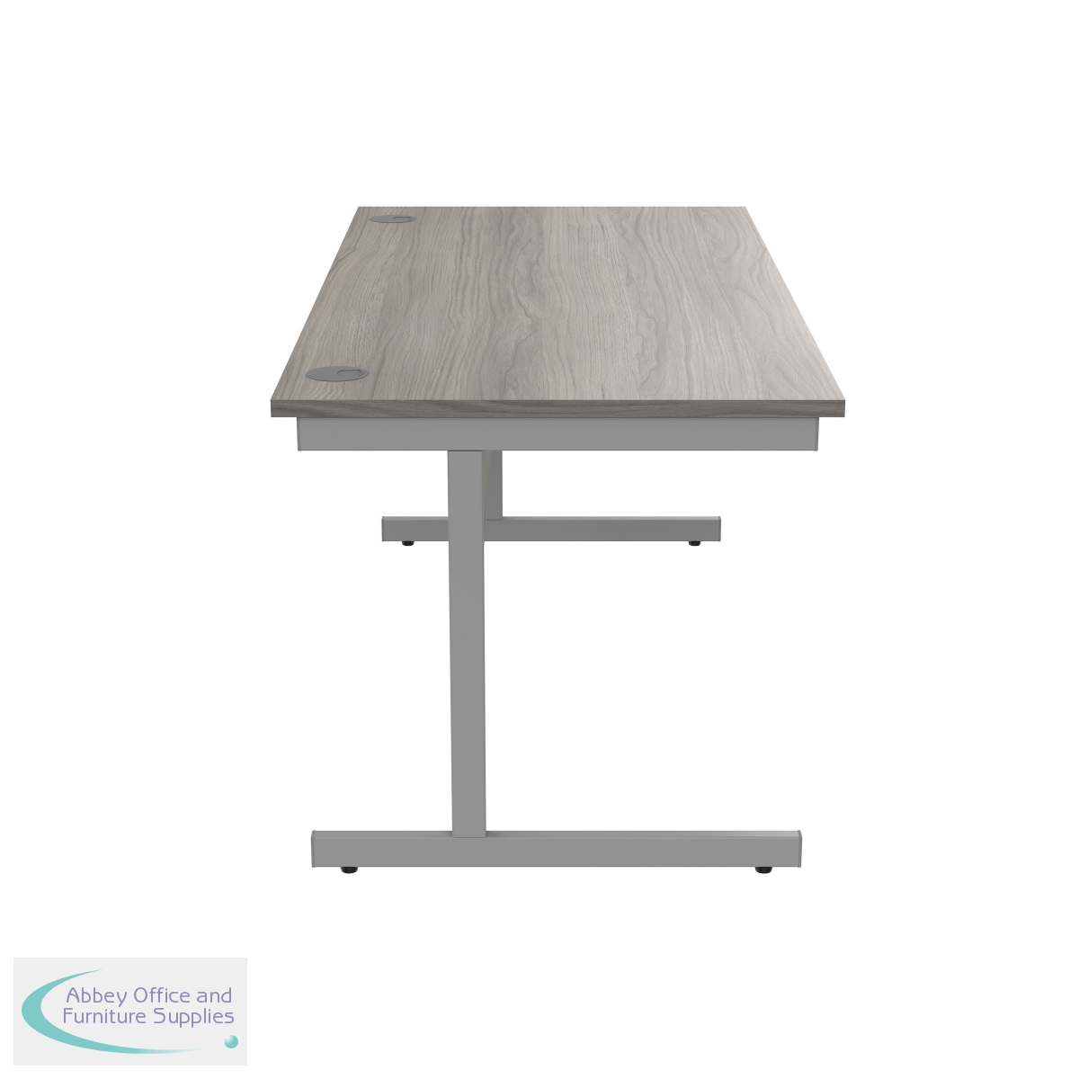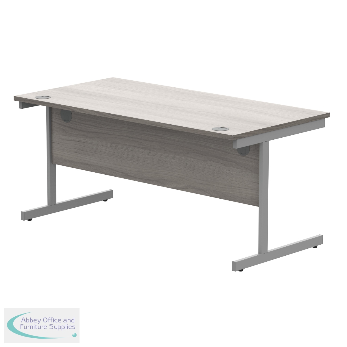KF803697 - Astin Rectangular Single Upright Cantilever Desk 1600x800x730mm Alaskan Grey Oak/Silver KF803697