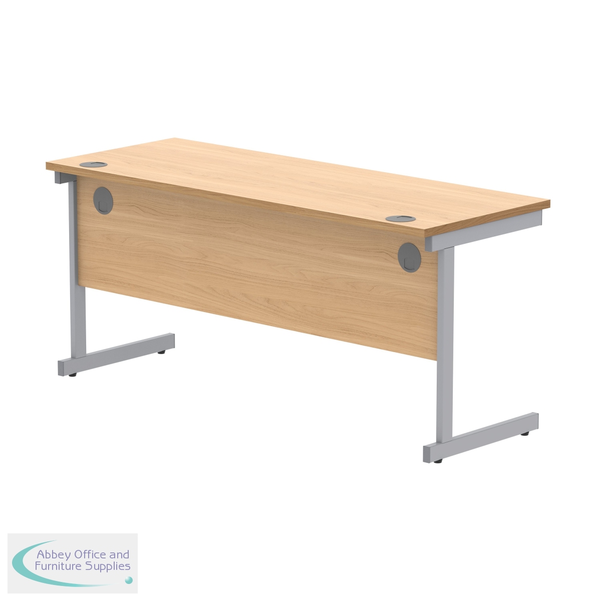 KF824268 - Astin Rectangular Single Upright Cantilever Desk 1600x600x730mm Norwegian Beech/Silver KF824268