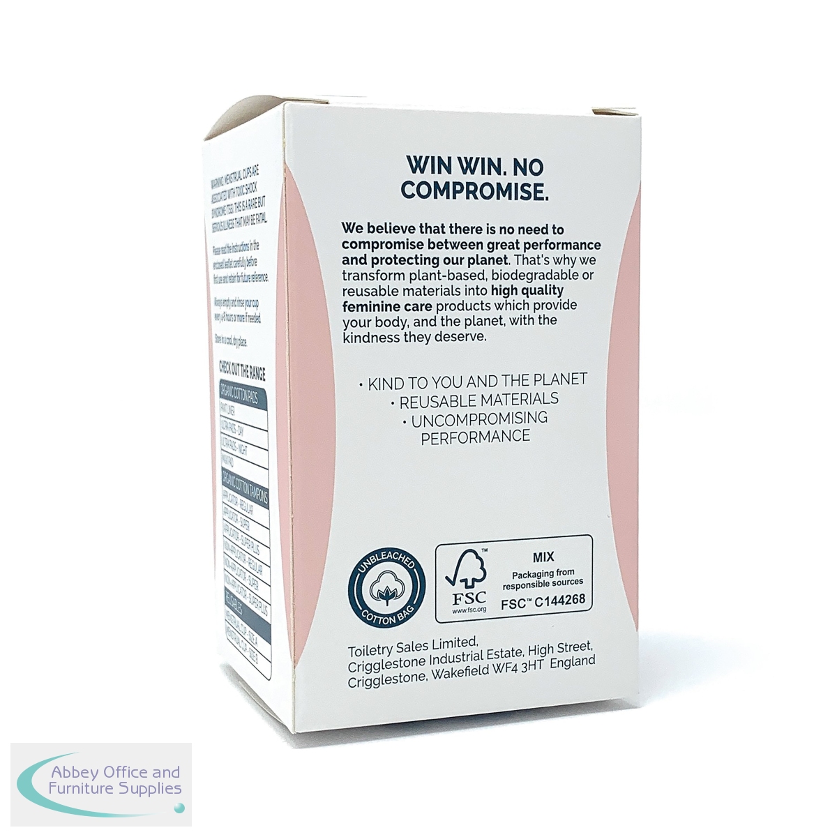 There is no need to compromise between great performance and protecting our planet. That's why plant-based and biodegradable materials are transformed into high quality period care products which provide your body, and the planet, with the kindness they deserve. Disposable period care products often contain chemical absorbents and non-renewable plastics. The benefit of using a menstrual cup is it reduces waste and Co2 emissions, an eco-friendly alternative to tampons. Can be worn for up to 8 hours and holds as much as 3 tampons, making them cost effective. Made with 100% medical-grade silicone. Dermatologically tested with no latex, dyes, bleach, BPA or phthalates. Non-hazardous waste material, so can be recycled. Supplied with a cotton carry bag.
