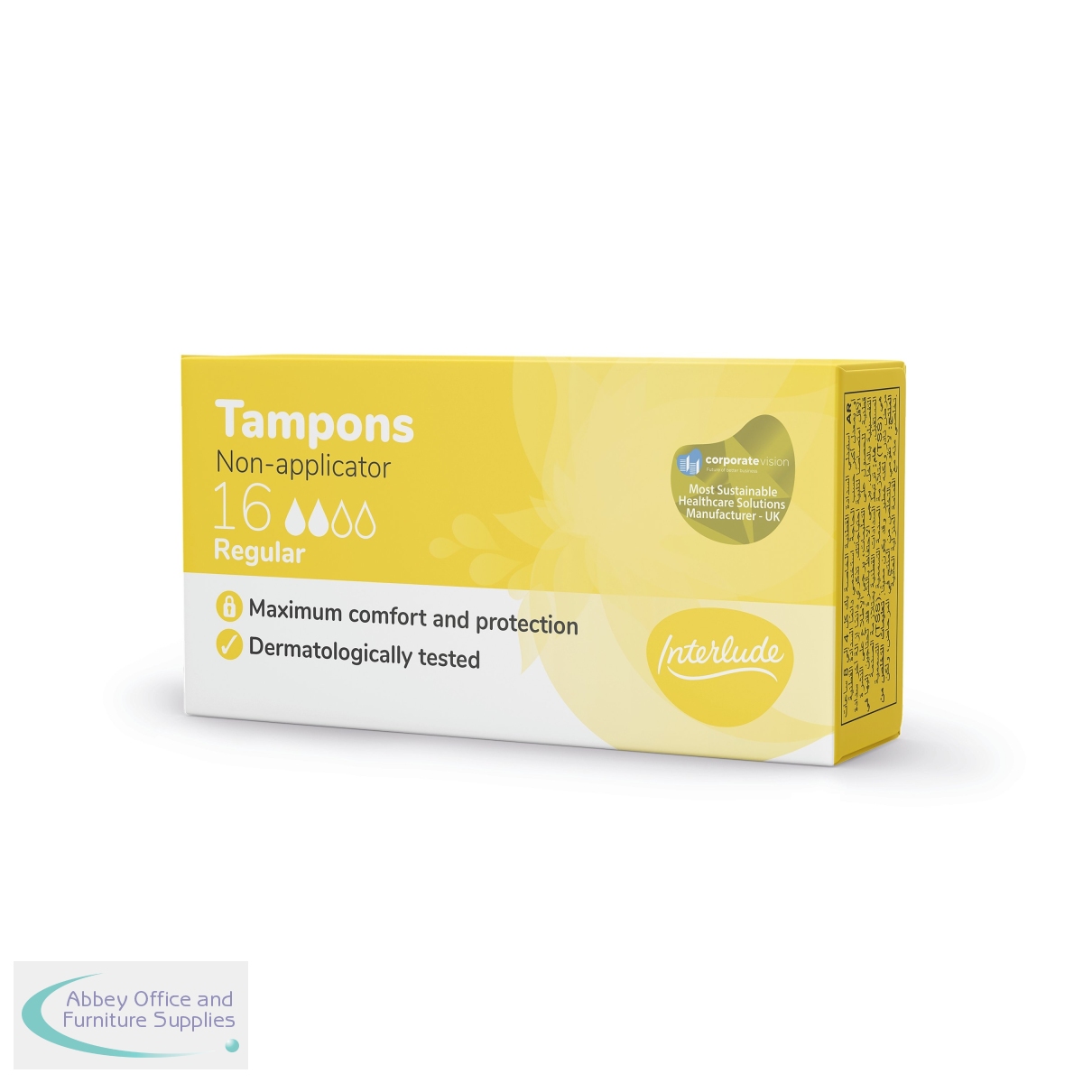 Interlude period care provides high performance, effective protection at exceptional value. In line with the leading brands, we have developed Interlude with an uncompromising commitment to ultimate protection, security and comfort. Developed to provide all round comfort and protections for up to 8 hours. Dermatologically tested. This pack contains 16 digital tampons regular per box. 12 packs supplied.