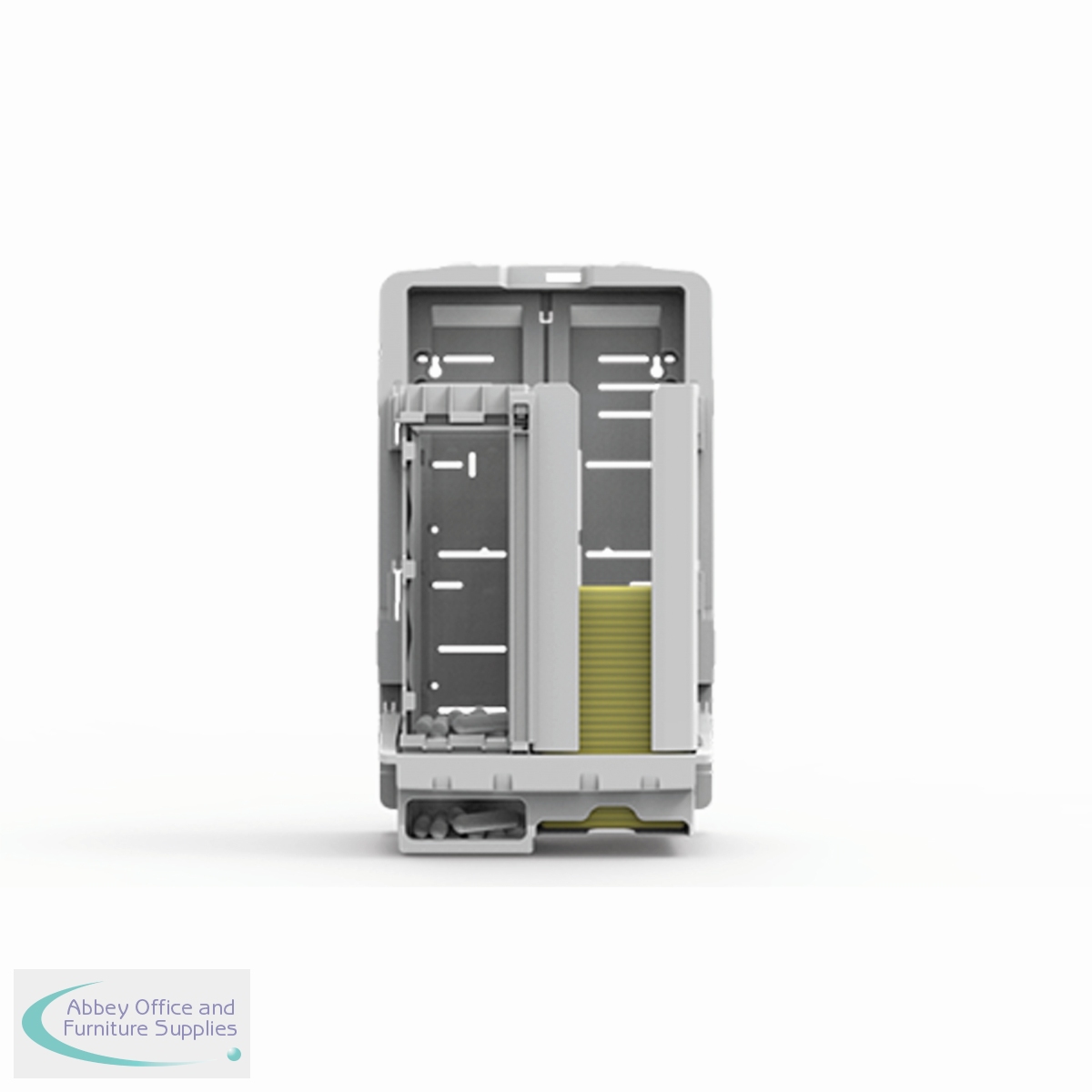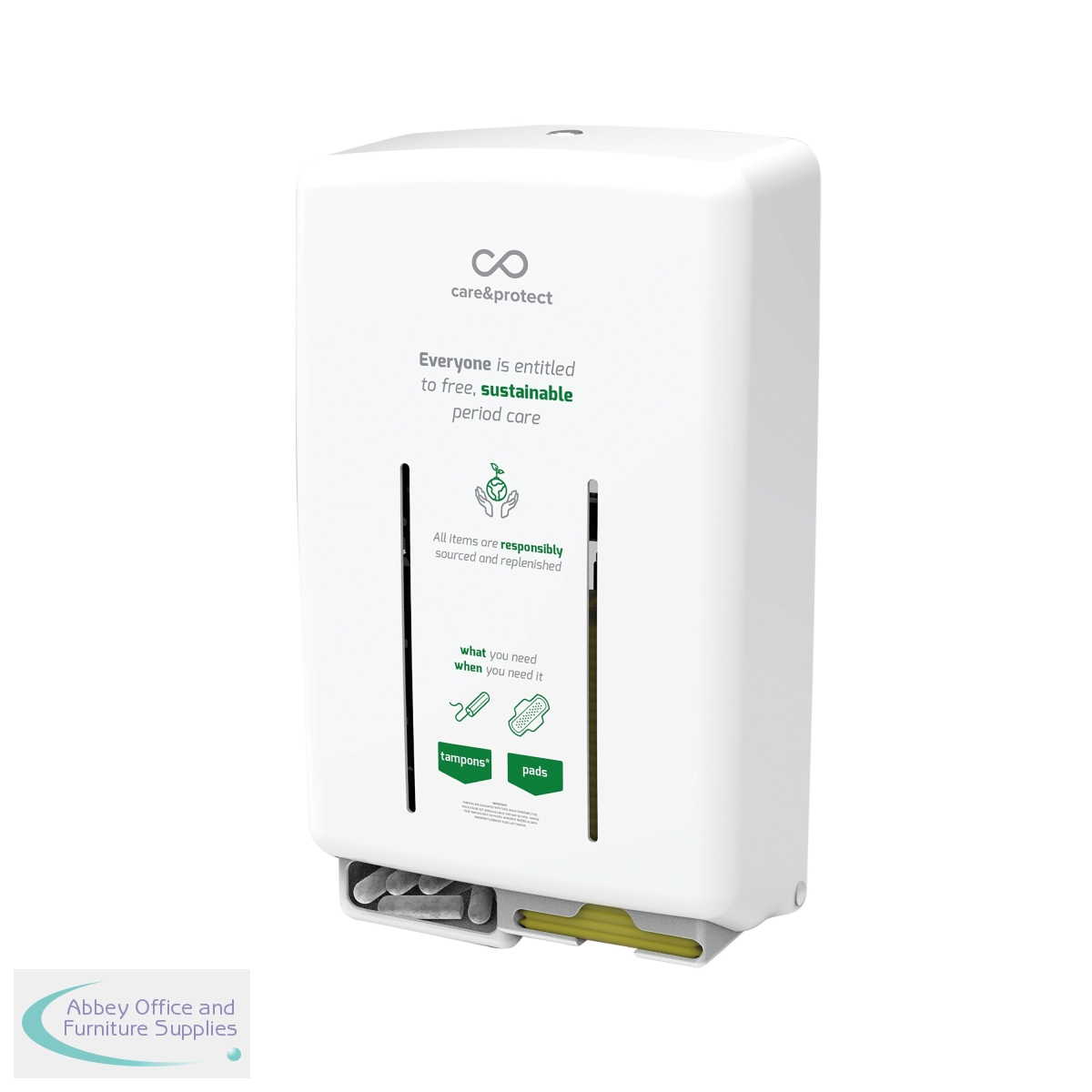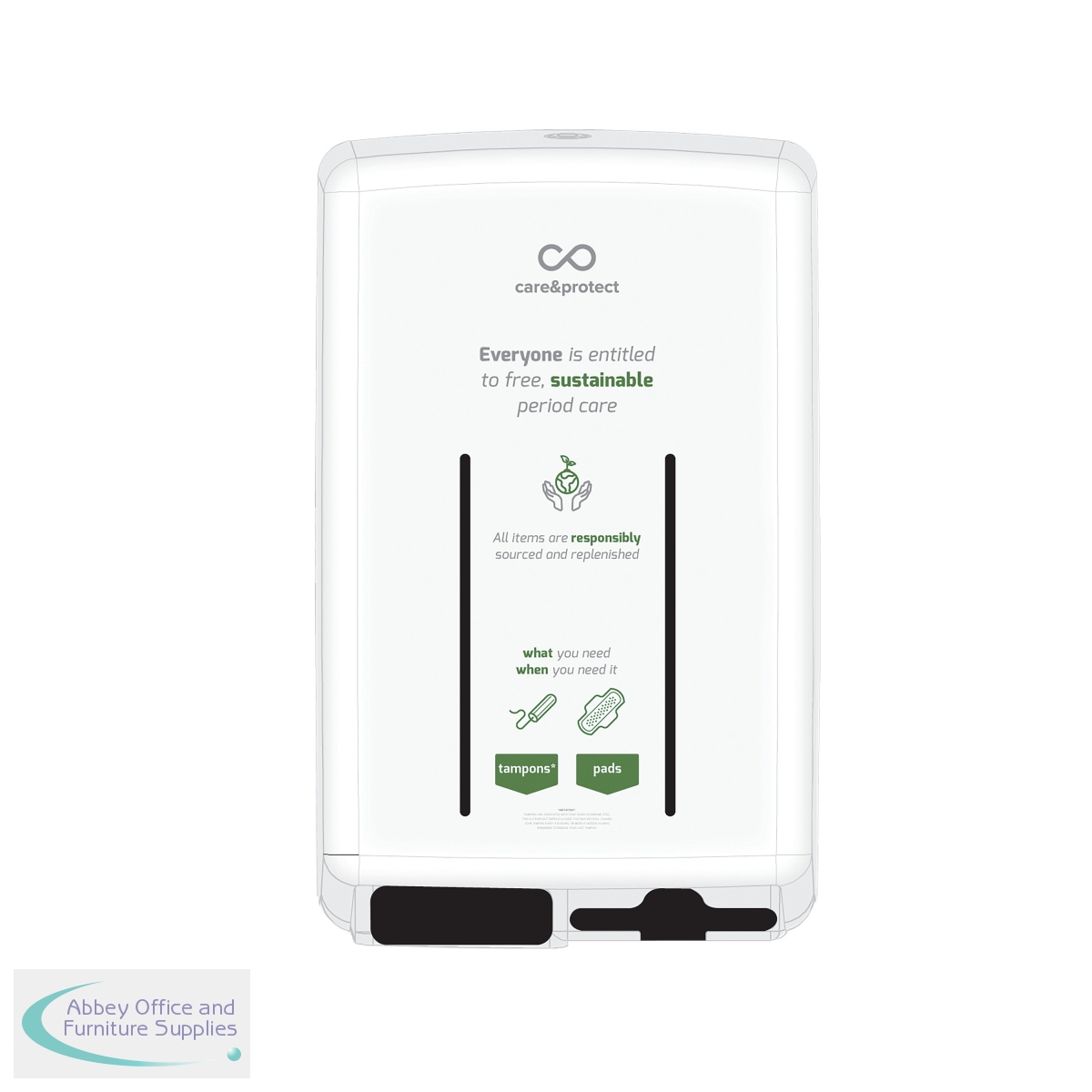 These dispensers offer a hygienic and controlled way to access period care products. Install in cubicles for discreet access. Lightweight and compact, so easy to position. Opened and secured with a key lock mechanism (1 key supplied). There are two sight windows to easily identify if the dispenser needs to be refilled. Dispenser features a direct printed sustainability message and is 100% recyclable. An easy and discreet way to provide free period care.