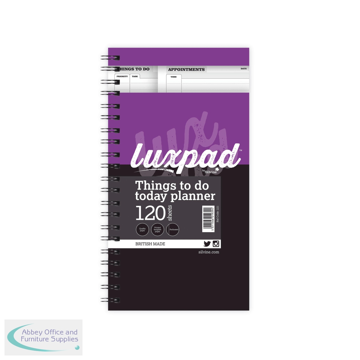 Made with care in the UK, Silvine's wirebound 'Things to do today' planner measures 280 x 150mm and contains 120 sheets of quality, 75gsm paper. Its durable, gloss laminated cover helps to protect the notes from damage. The perfect tool for organising a busy day, it is printed with 'Things to do', 'Appointments' and 'Key Notes' over a double page-spread for an at-a-glance view; with sections for date and tasks with 'Priority' and 'Completed' check boxes. The perforated pages can easily be torn out or turned over for reference at a later date through the wire binding which allows the pad to lay flat and sit neatly on the desk while open.