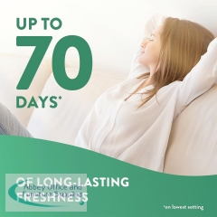 One spritz of Air Wick Active Fresh Air Freshener in Fresh Cotton is enough to fill a room. The aerosol-free automatic spray releases bursts of continuous fresh fragrance so your environment always smells welcoming. Just set the air freshener to your preferred fragrance intensity setting and enjoy while the fresh cotton refill neutralises odours. Fragrances your home, office or bathroom for up to 70 days per refill when on low setting. Ideal for any room, at home, in the office or work environment.