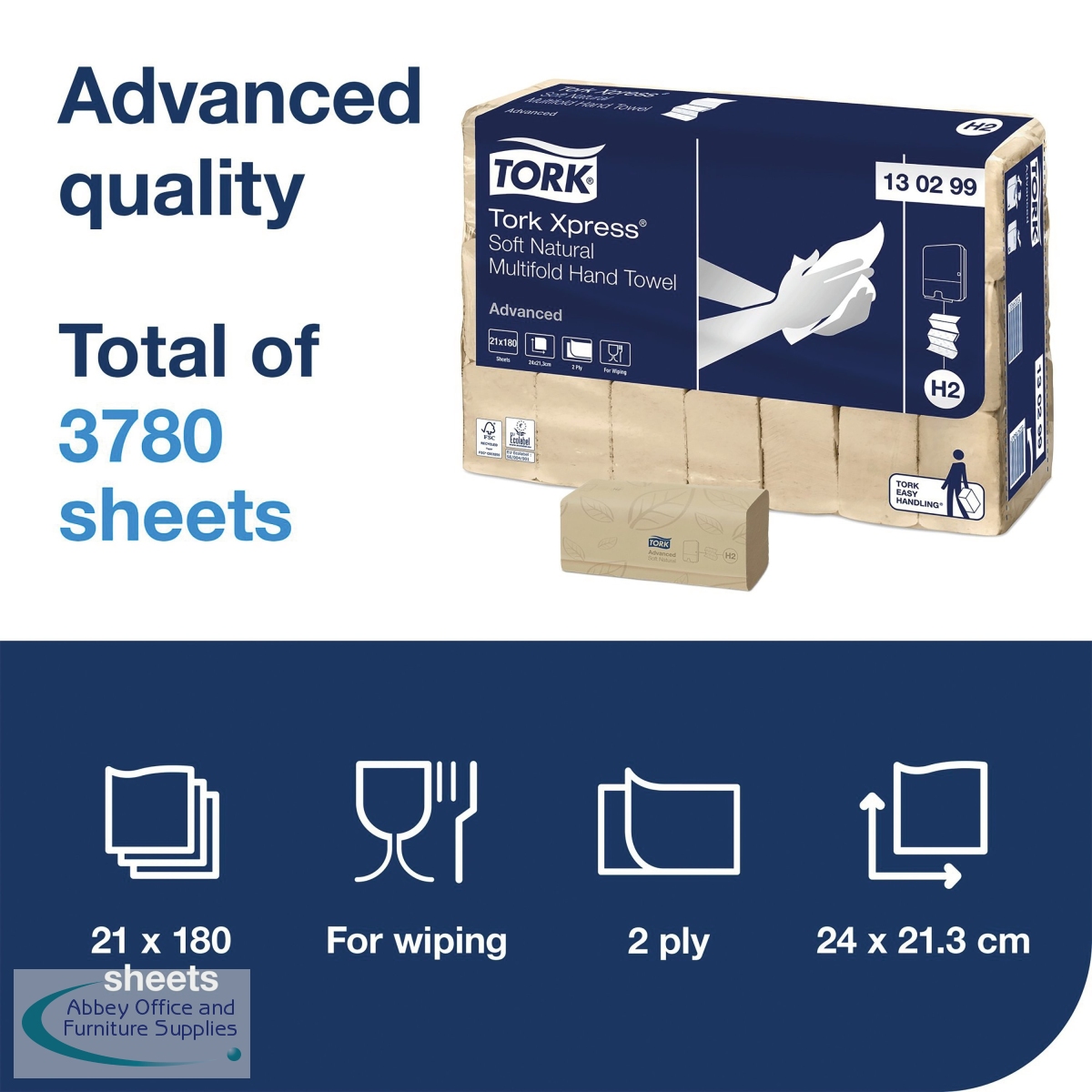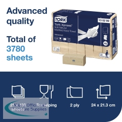 SCA84845 - Tork Xpress Soft 2-Ply Multifold Hand Towel Advanced 180 Sheets Per Sleeve Natural (Pack of 21) 130299