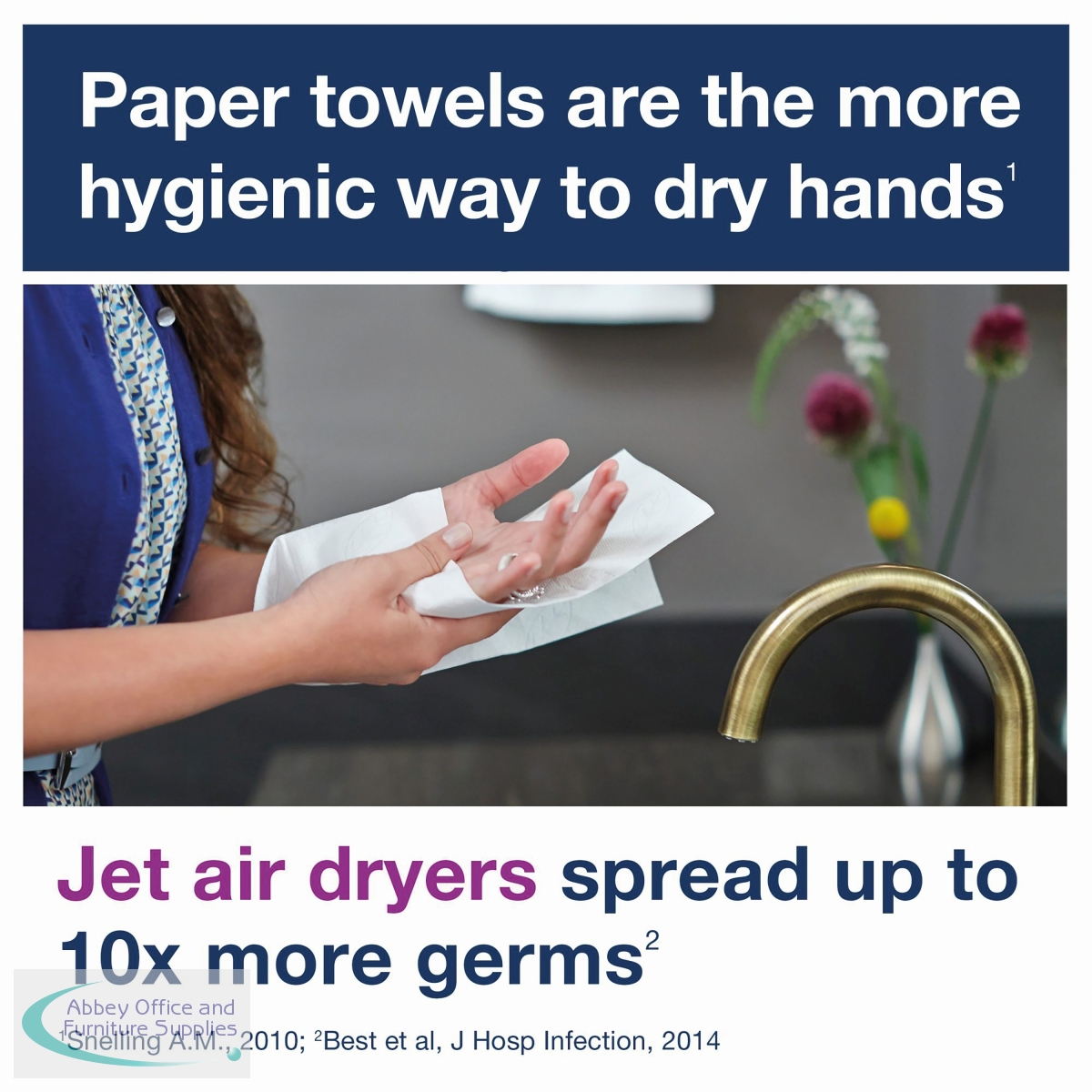 The Tork Advanced Tork Xpress Soft Multifold Hand Towels provide good hand drying and comfort to your guests, soft and gentle to hands with a high-quality feel. Attractive Tork leaf decor, designed to make a great impression. These towels are suitable for the Tork Xpress Multifold Hand Towel Dispenser for medium traffic washrooms. Fits small places and provides both comfort and hygiene to your guests. Tissue is made of 100% recycled fibres. Pack of 21 sleeves. Total of 3780 towels.