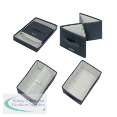 Make yourself at home wherever your day takes you with the fabric storage range from Leitz. With its minimalist design and matt grey velvet finish, you can stay organised while adding style to your home and workspace. Leitz fabric storage boxes with lids are ideal keeping the home and office tidy. Made from an overall 57% recycled content, the soft material is reinforced with recycled cardboard for strength and durability. When not in use, the foldable boxes are fully collapsible for easy storage. Supplied in a pack of two small storage boxes.