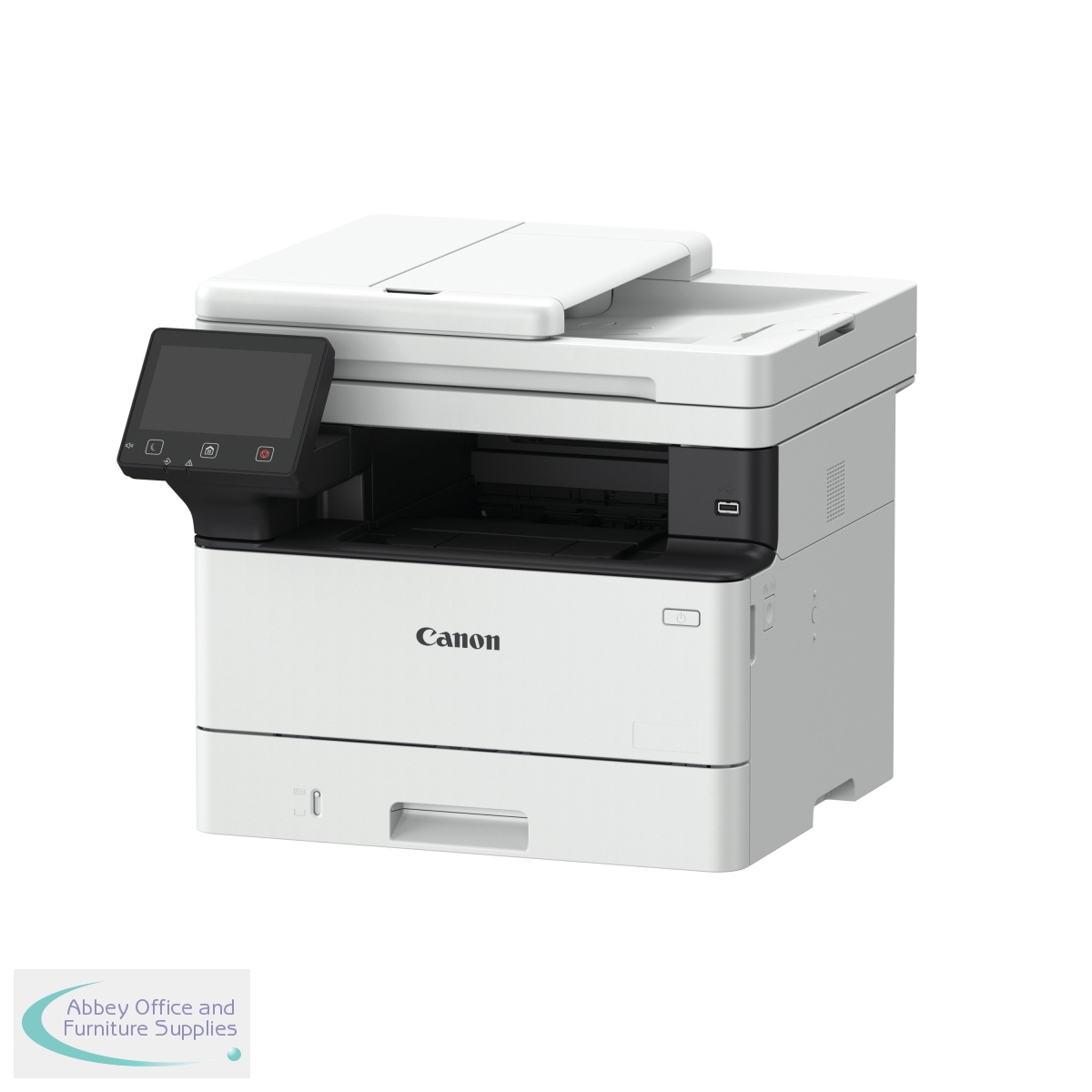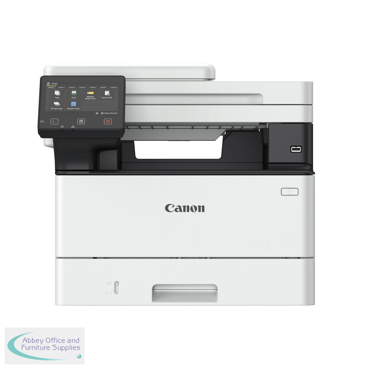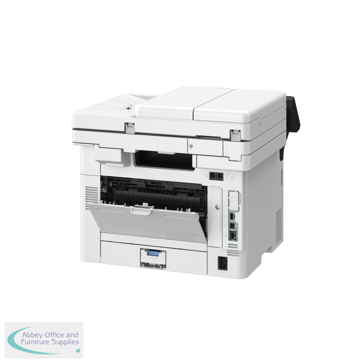 The Canon i-SENSYS MF465dw A4 mono multi-function all-in one laser printer, able to print, copy, scan and fax documents. With a 1GB memory. Designed for use in small offices and at home. Protects your documents, devices and network from viruses and data theft with 360-degree security. Features include TLS1.3, Verify System at Startup and Secure PIN print. With a print speed and copy speed of up to 40 ppm (A4), with duplex printing providing a print speed of up to 33.6 ipm (A4). Includes Automatic document feeder functionality. Print resolution of up to 1200 x 1200 dpi. Copy resolution of up to 600 x 600 dpi, copy 1-sided to 2-sided (automatic). Also offers colour scanning, with an optical scan resolution of up to 600 x 600 dpi. Scan to email: TIFF/JPEG/PDF/Compact PDF, Searchable PDF. Fax modem speed: 33.6 kbps (up to 3 seconds/page). Includes a fax memory of up to 256 pages, and up to 104 speed dials. Comes with a standard paper input 250-sheet cassette and 100 sheet multi-purpose tray and 50 sheet ADF. All operated via a 12.7cm LCD colour touch screen control panel. Connect with USB 2.0 Hi-Speed, 10BASE-T/100BASE-TX/1000Base-T, Wireless 802.11b/g/n, Wireless Direct Connection. Advanced printing features: Encrypted Secure Print, Secure print, print from USB memory key (JPEG/TIFF/PDF), Print from Cloud (Dropbox, GoogleDrive, OneDrive (PDF/JPEG), Microsoft Universal Print; iOS: AirPrint, Canon PRINT Business app; Android: Mopria certified, Canon PRINT Business app and Canon Print Service Plug-in. Supplied with cartridge 070, 3,000 pages cartridge (Black).