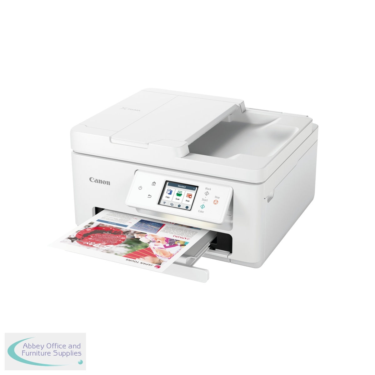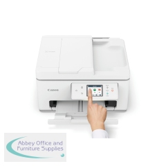 The Canon PIXMA TS7750I multi-function printer is a fast, high-quality printer with streamlined usability and support for stress-free, money-saving printing via PIXMA Print Plan, where you can save up to 50% on ink costs, choose a print subscription plan that suits your usage and have ink delivered to your home. Easy to use with the Switch UI2, colour-coded menus show you only the icons your need for a specific task, whether it is work, study or creativity. With a print speed of up to 15.0 ipm (mono), 10.0 ipm (colour), and a copy speed of up to 7.0 ipm. Copy up to 99 multiple copies (max.), and copy zoom of 25 - 400% and fit to page. Print resolution up to 1,200 x 1,200 dpi. Auto duplex print (A4, LTR - plain paper). Flatbed (Platen) CIS colour scanner, with optical resolution of 1,200 x 2,400 dpi. Connectivity via Hi-Speed USB, Wi-Fi, Wi-Fi Security and Wireless. Mobile connectivity: Canon PRINT app, Easy-PhotoPrint Editor app, Creative Park app. Printer features: Easy-PhotoPrint Editor Software, PIXMA Cloud Link, Canon Print Service Plugin and Mopria (Android), Apple AirPrint, Wireless Direct, PosterArtist Web. Rear tray: up to 20 sheets (photo paper), up to 100 sheets (plain paper); Front cassette: up to 100 sheets (plain paper). With ADF for scanning or copying up to 35 pages at a time. All operated via a 6.7cm LCD touch screen. Supplied with in-box FINE cartridges (black and colour).