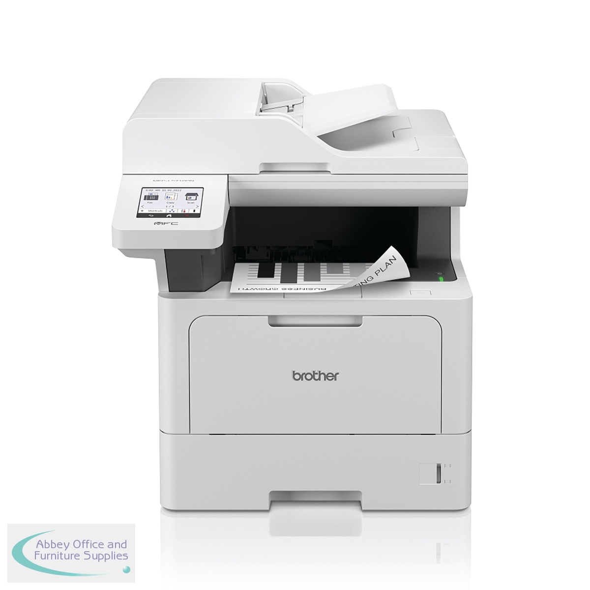 The Brother MFC-L5710DN professional all-in-one mono laser printer with copy, fax and scanning capability is highly productive with fast, high-quality printing and scanning. Built for business, this intelligent multifunction printer is designed to deliver a user-friendly, professional experience that your business can depend on. Print up to 48 pages per minute. Automatic duplex printing, scanning and faxing. Fax modem with 33.6kb per second. Gigabit Ethernet wired network. 512MB internal memory. Controlled via a 8.9cm colour touchscreen. Supplied with a standard 250 paper tray (A4). Supplied with toner.