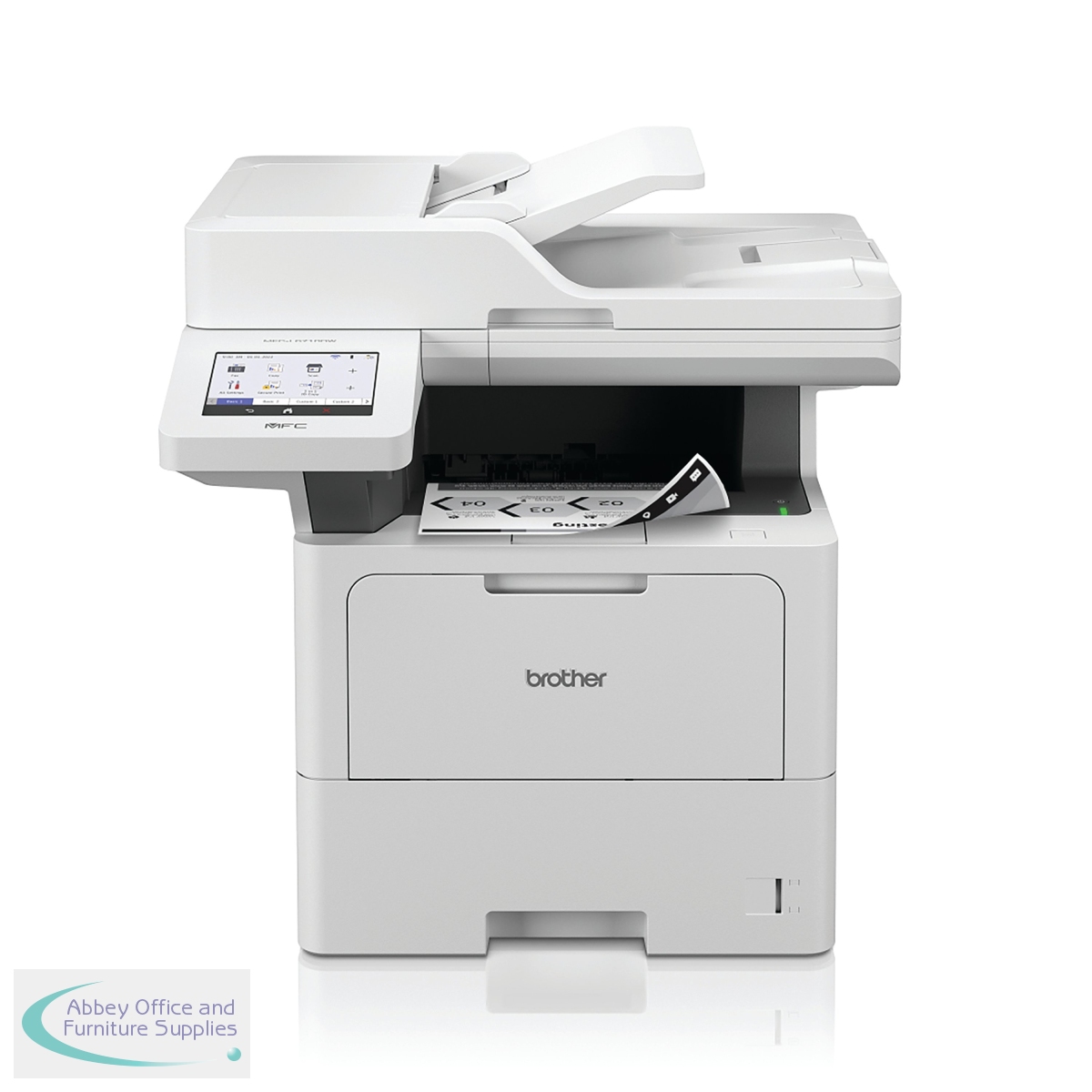 Designed for high volume users, this intelligent Brother MFC-L5710DW mono laser printer, copier and scanner with fax capability delivers a user-friendly, professional experience with exceptional printing that your business can rely on. Print up to 50 pages per minute. 2-sided printing, up to 24 sides per minute. Provides 2-sided scanning, up to 56 images per minute. Colour and mono scanning. 70 sheet 2-sided automatic document feeder. Wireless and Gigabit Ethernet wired network. Supplied with a standard 250 paper tray (A4). Supplied with toner.
