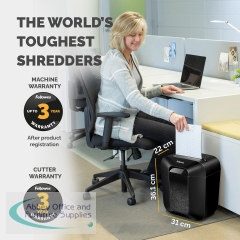The Fellowes Powershred LX25 Cross-Cut Shredder is ideal for regular use in home and small office environments. It can shred 6 sheets at a time into 4x37mm cross-cut particles. When switched to lock position, the patented safety lock prevents the LX25 paper shredder from accidentally being activated, ideal security for the home environment. The LX25 personal paper shredder will shred continuously for up to 3 minutes before requiring a 30 minutes cool down period. The shredder bin has a 11.5 litre capacity with a lift-off head.