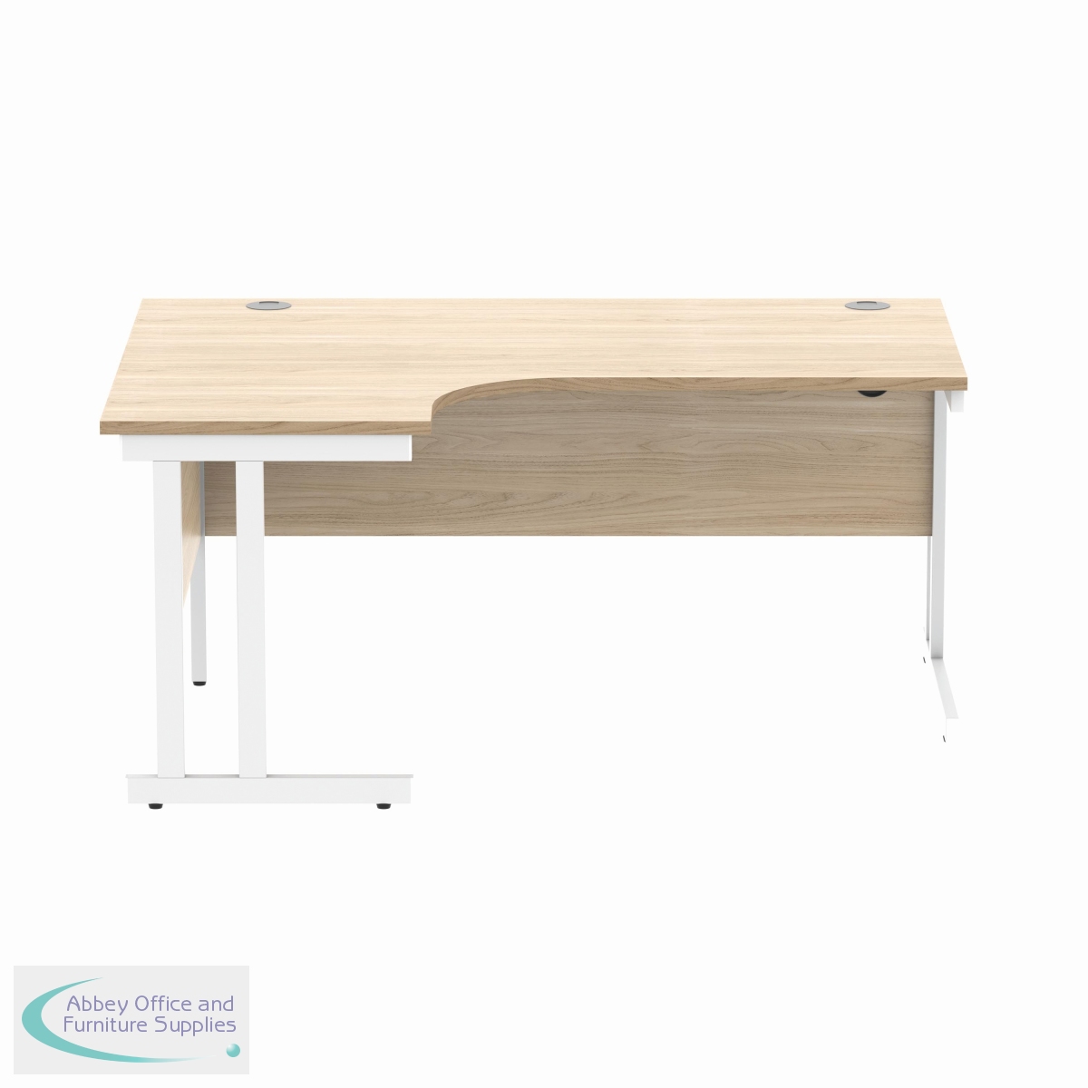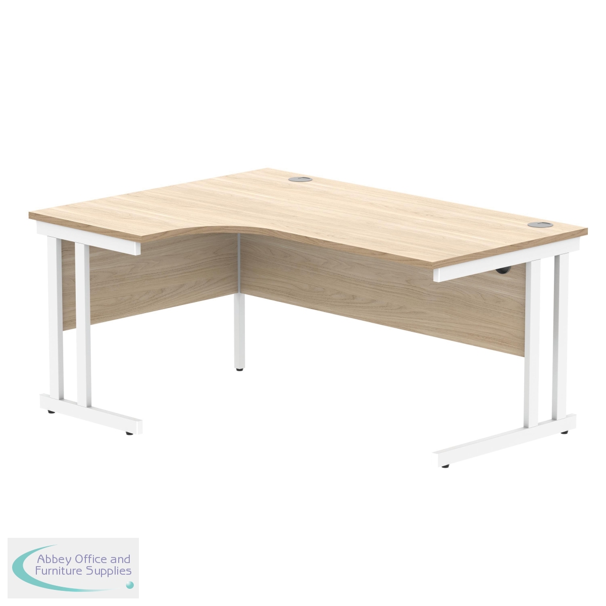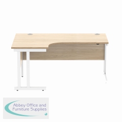 KF822320 - Polaris Left Hand Radial Double Upright Cantilever Desk 1600x1200x730mm Canadian Oak/White KF822320