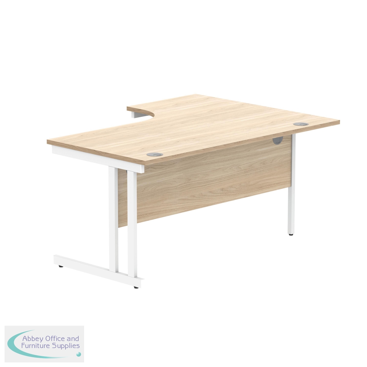 The Polaris Left Hand Radial Double Upright Cantilever Desk is a versatile workstation for use in a modern office environment. Featuring a strong cantilever frame for support and stability. The radial design offers easy working access to your computer, as well as ample additional desktop space. It features a 25mm thick desktop with dual cable management ports to keep workspaces tidy and free from wires. The desk includes a modesty panel as standard.