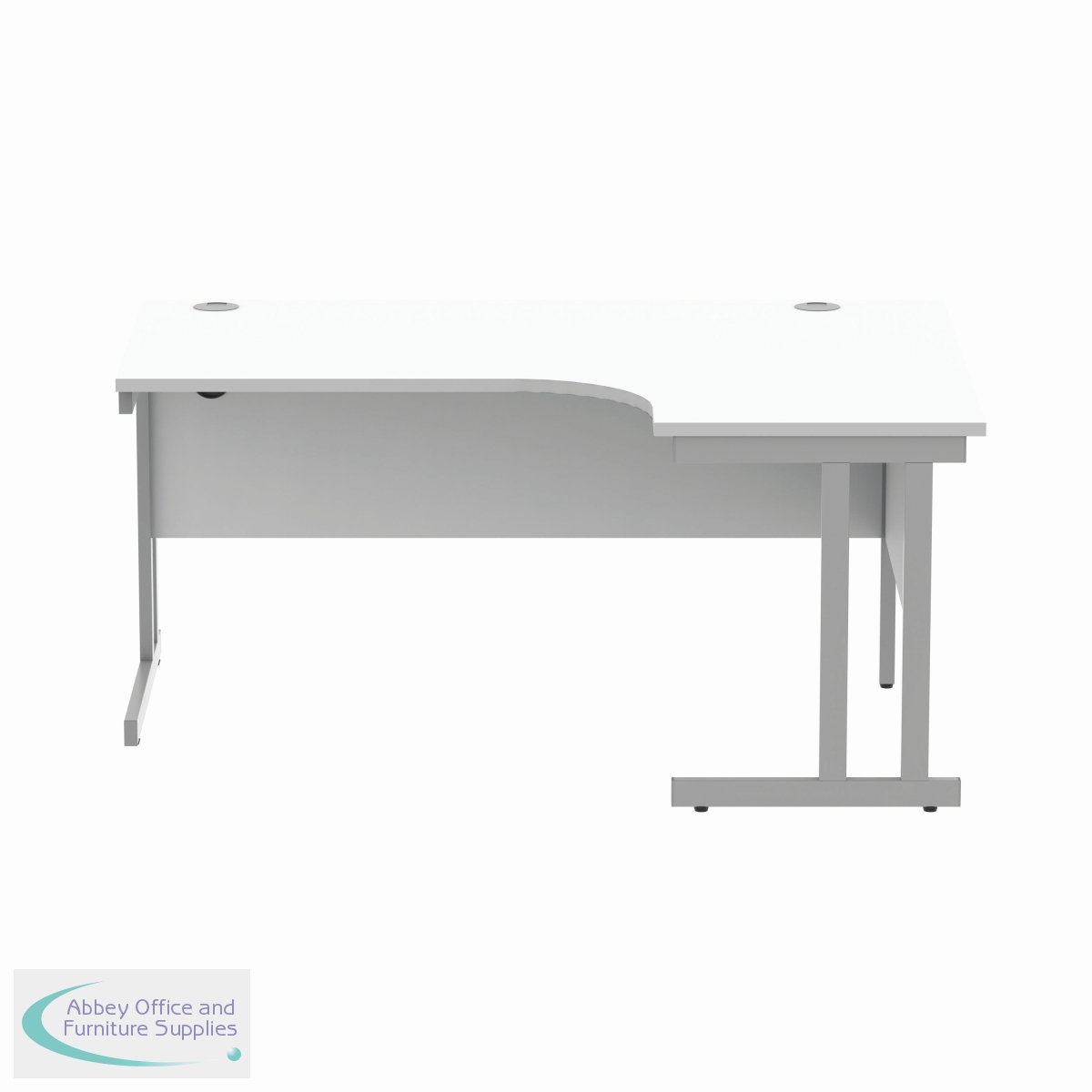 The Polaris Right Hand Radial Double Upright Cantilever Desk is a versatile workstation for use in a modern office environment. Featuring a strong cantilever frame for support and stability. The radial design offers easy working access to your computer, as well as ample additional desktop space. It features a 25mm thick desktop with dual cable management ports to keep workspaces tidy and free from wires. The desk includes a modesty panel as standard.