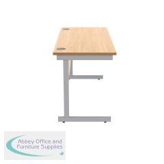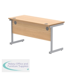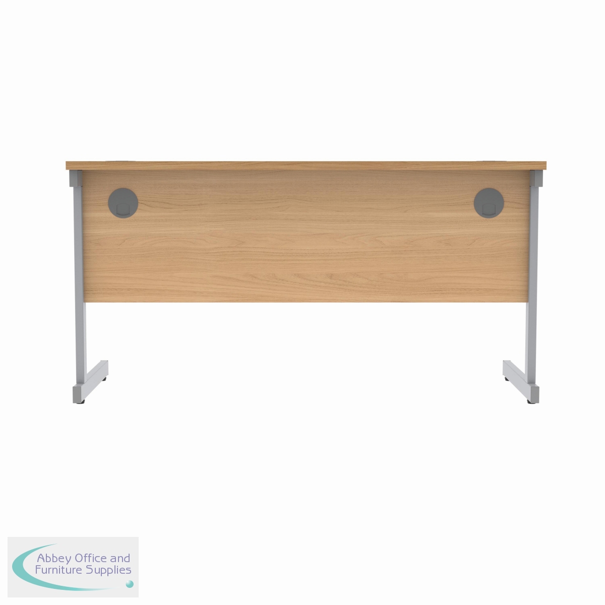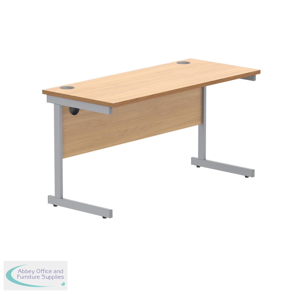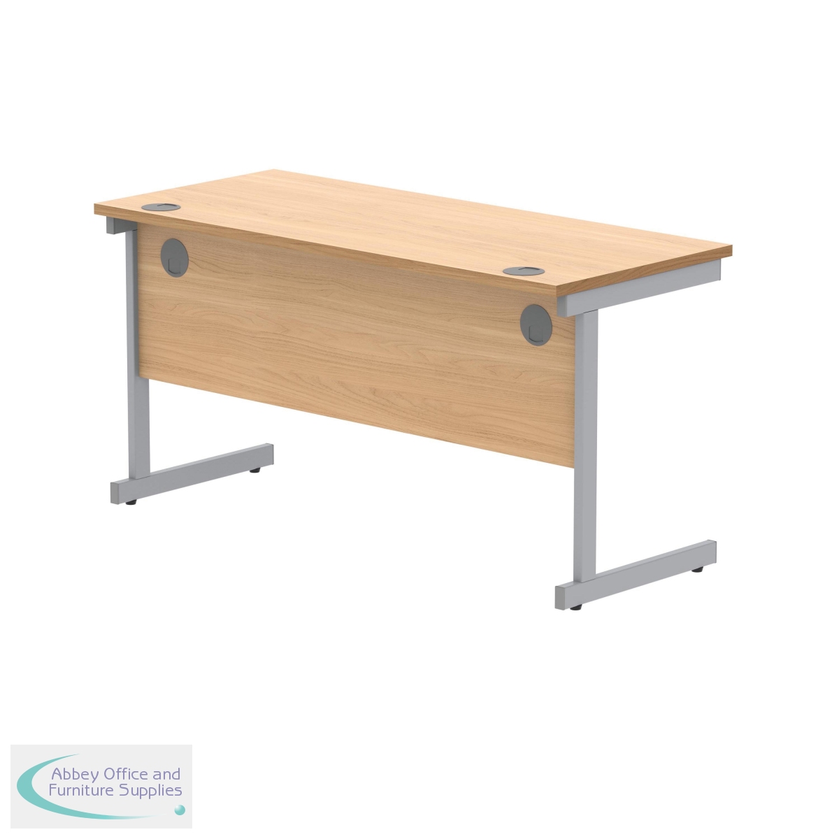 KF821550 - Polaris Rectangular Single Upright Cantilever Desk 1400x600x730mm Norwegian Beech/Silver KF821550