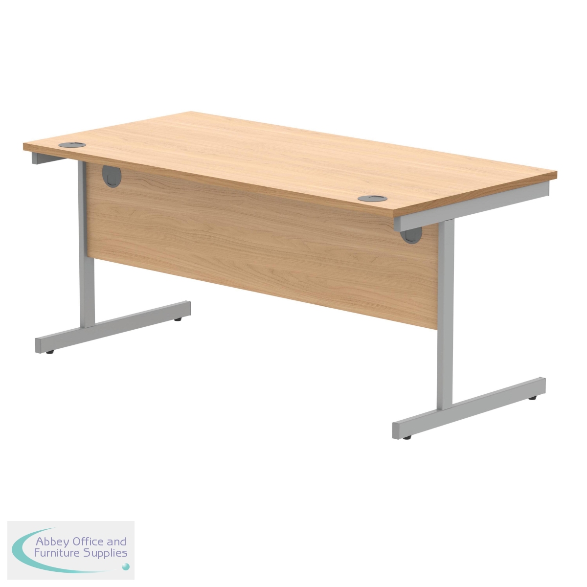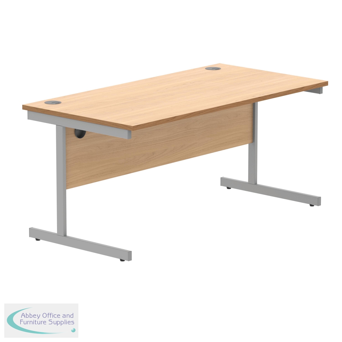 KF821590 - Polaris Rectangular Single Upright Cantilever Desk 1600x800x730mm Norwegian Beech/Silver KF821590