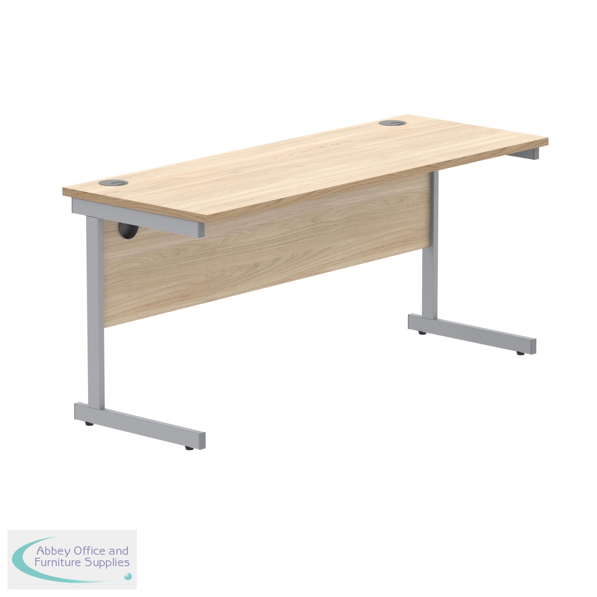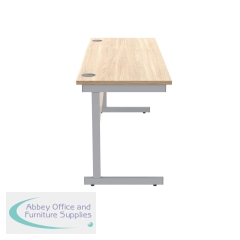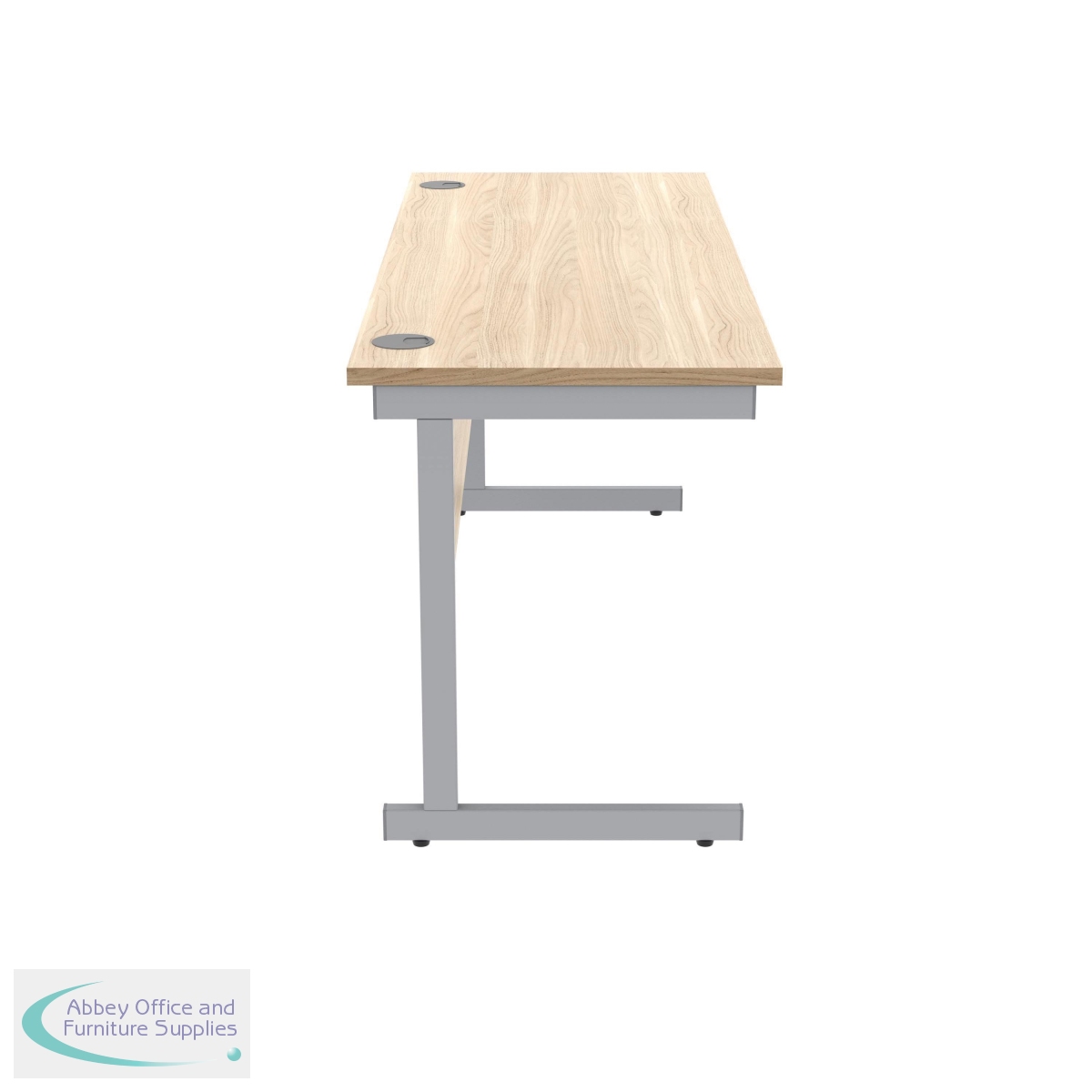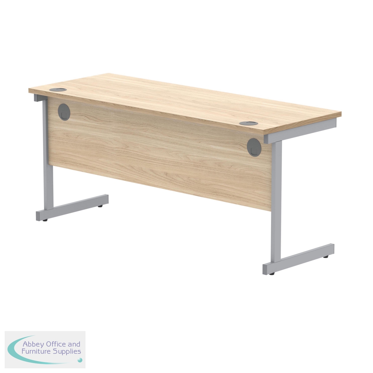 KF821680 - Polaris Rectangular Single Upright Cantilever Desk 1600x600x730mm Canadian Oak/Silver KF821680