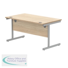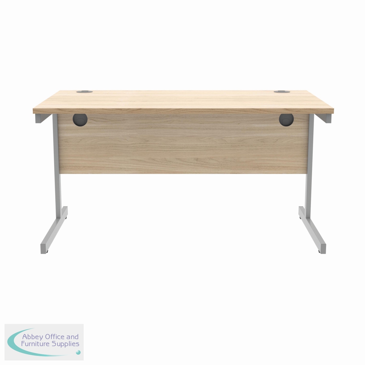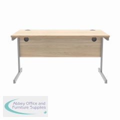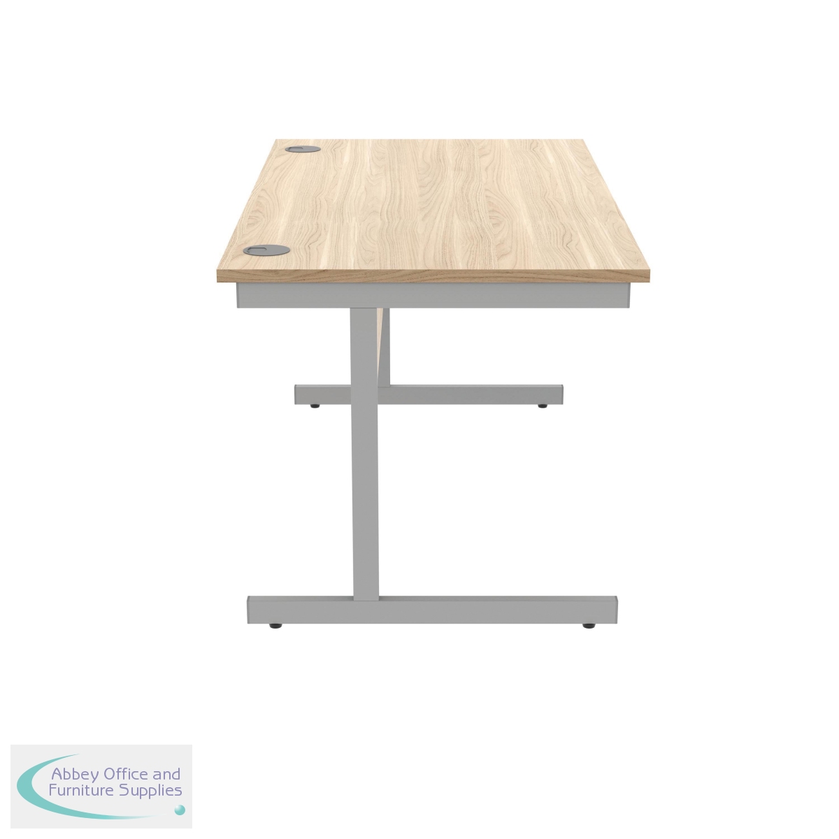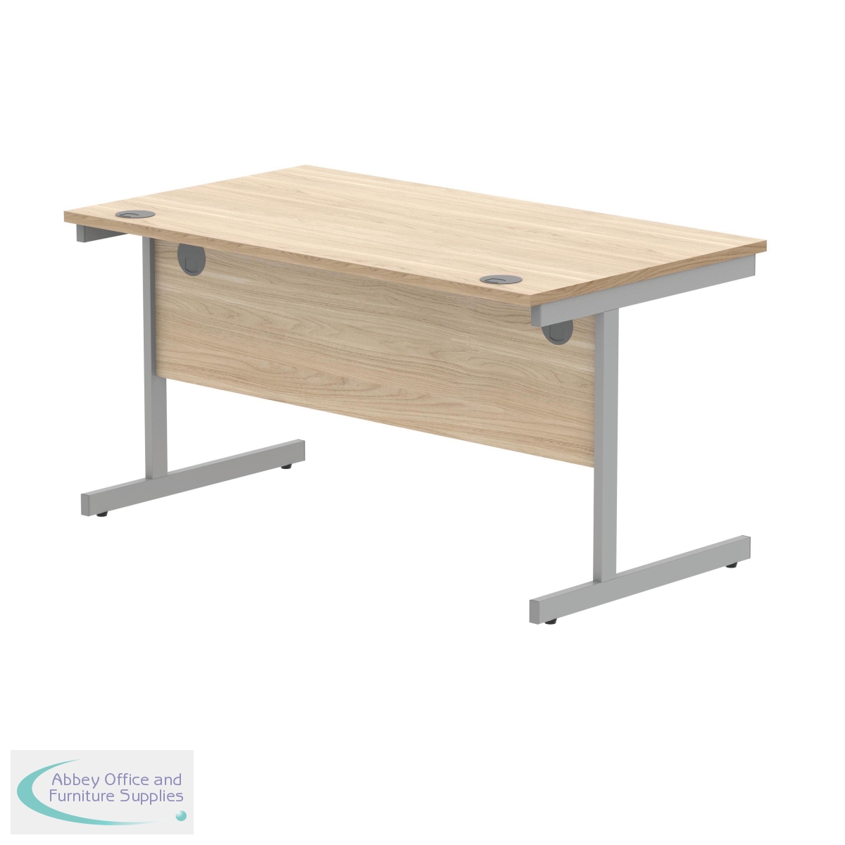 KF821700 - Polaris Rectangular Single Upright Cantilever Desk 1400x800x730mm Canadian Oak/Silver KF821700