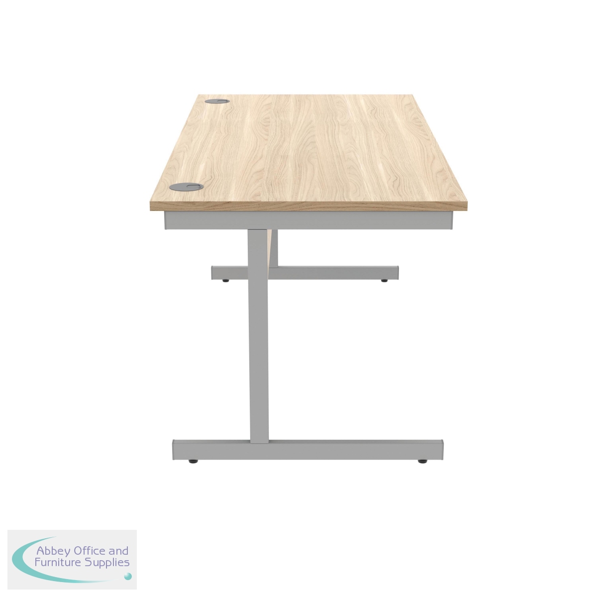 KF821710 - Polaris Rectangular Single Upright Cantilever Desk 1600x800x730mm Canadian Oak/Silver KF821710
