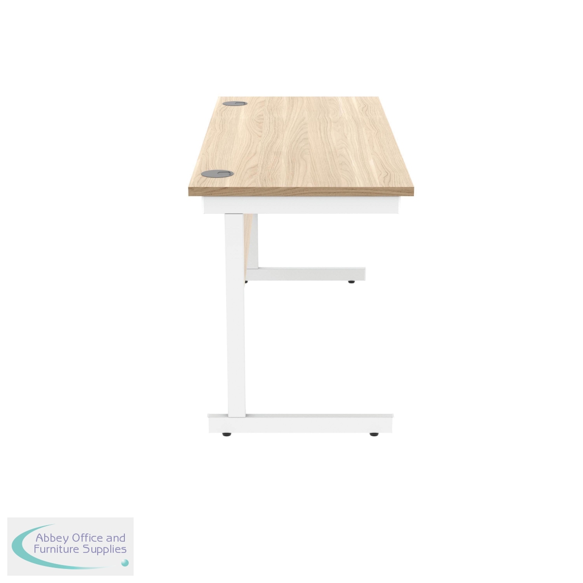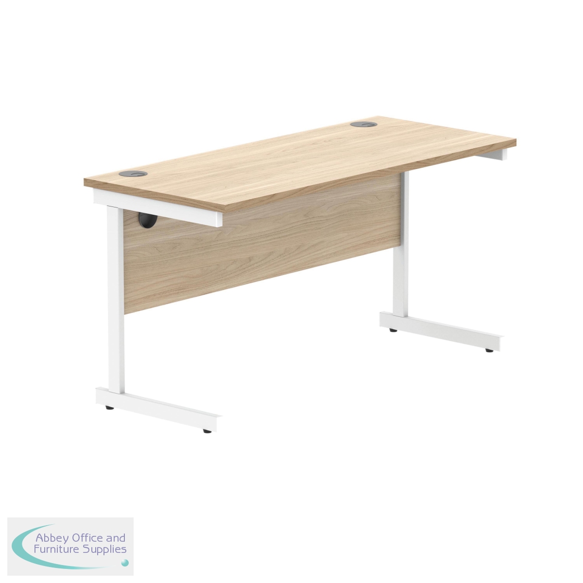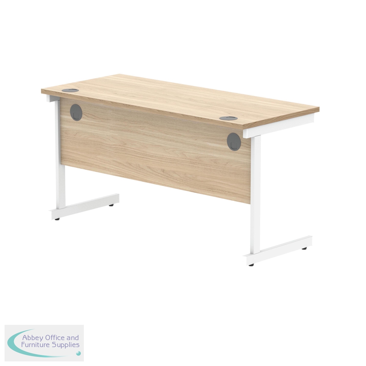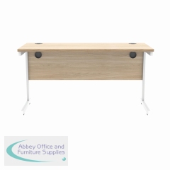 KF821730 - Polaris Rectangular Single Upright Cantilever Desk 1400x600x730mm Canadian Oak/White KF821730