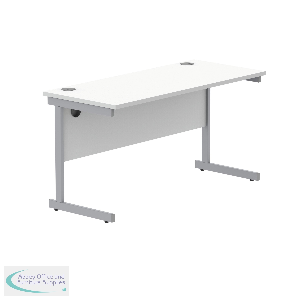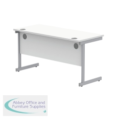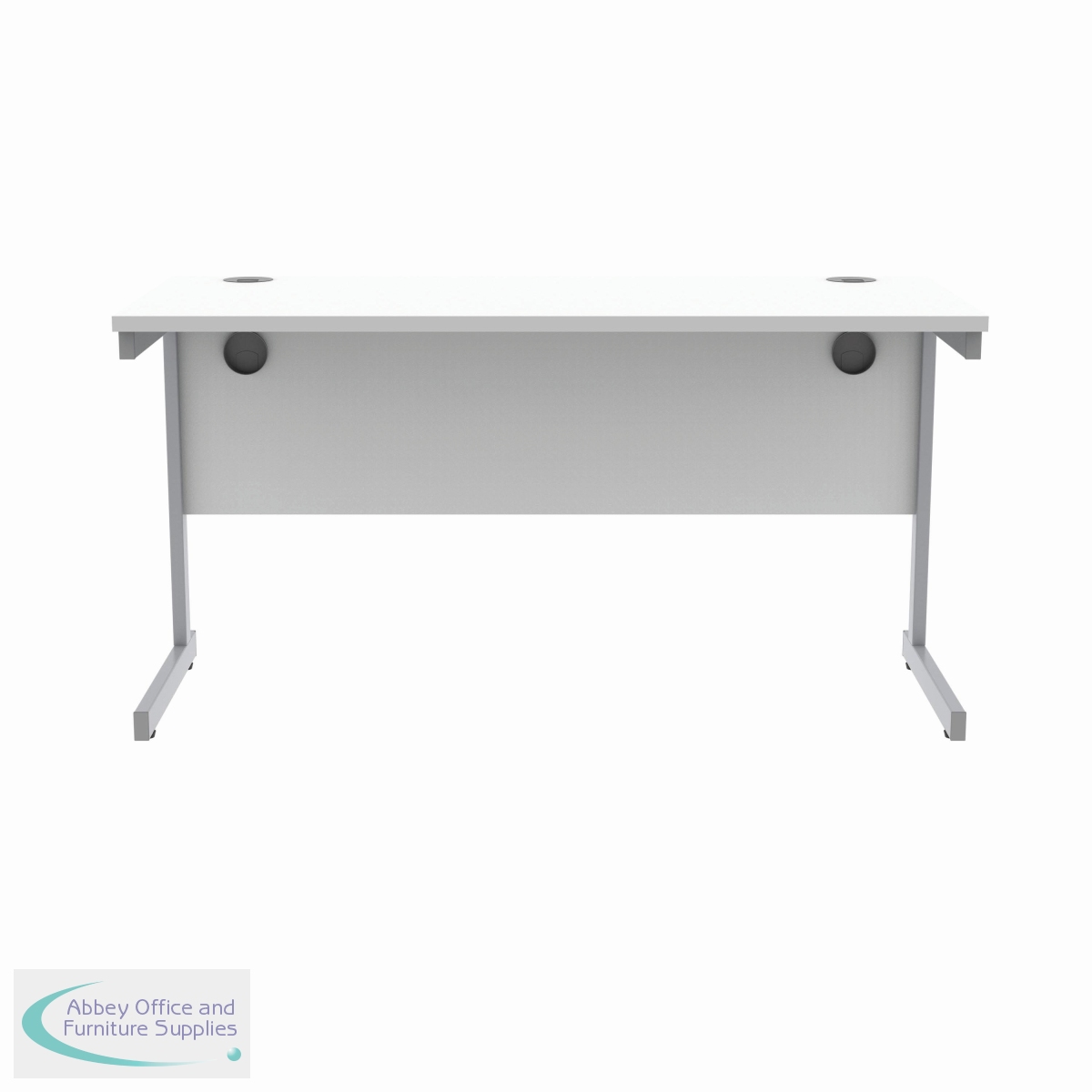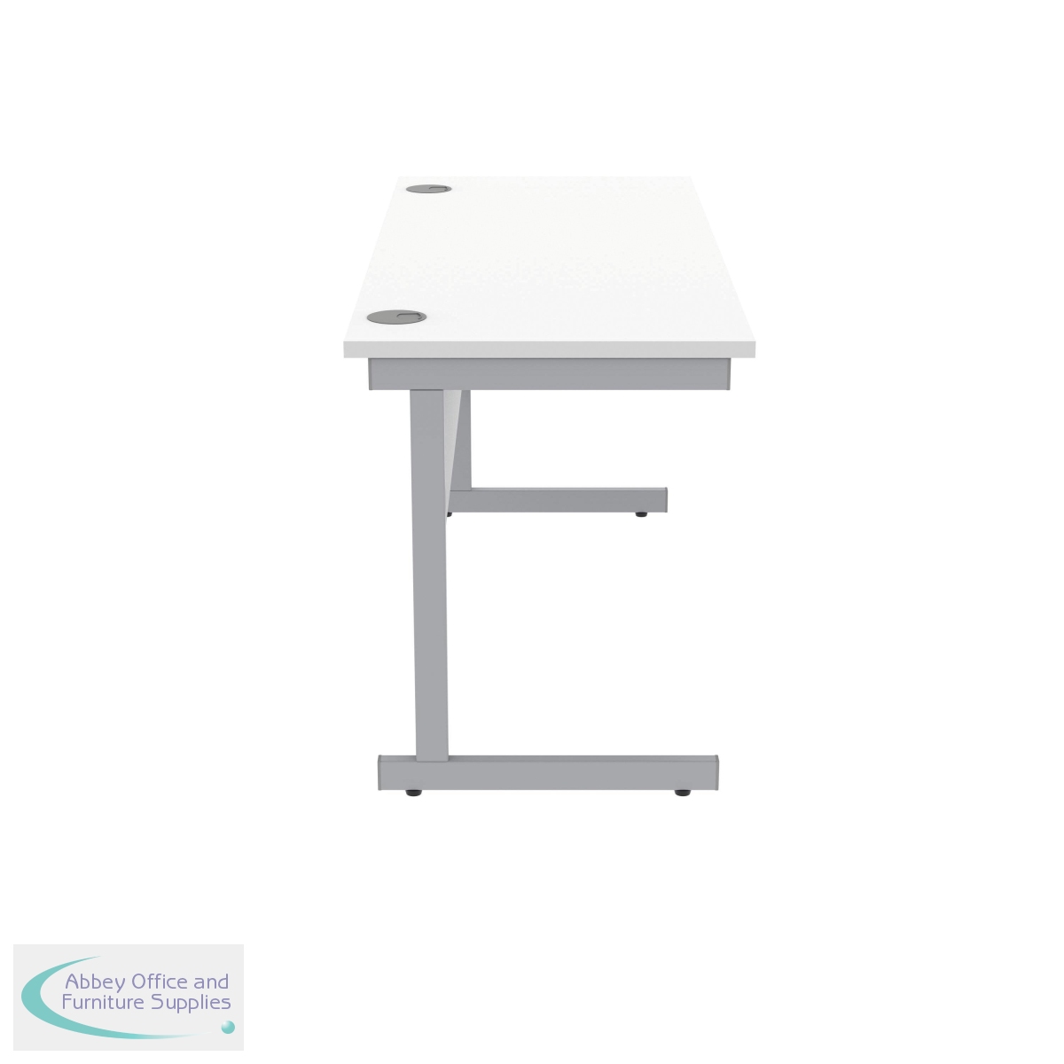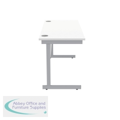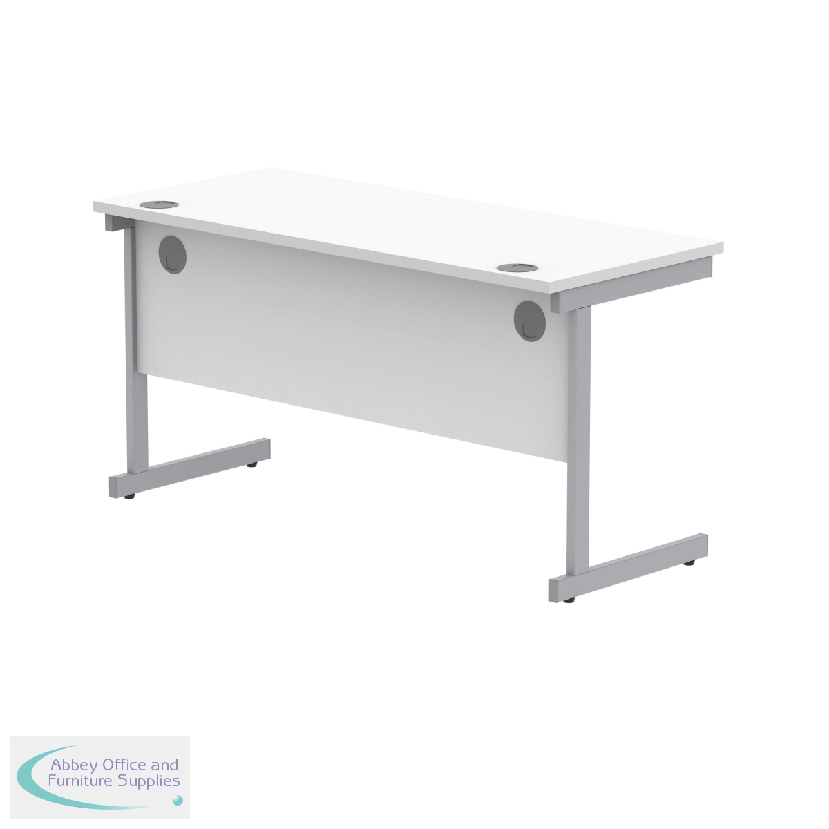 KF821790 - Polaris Rectangular Single Upright Cantilever Desk 1400x600x730mm Arctic White/Silver KF821790