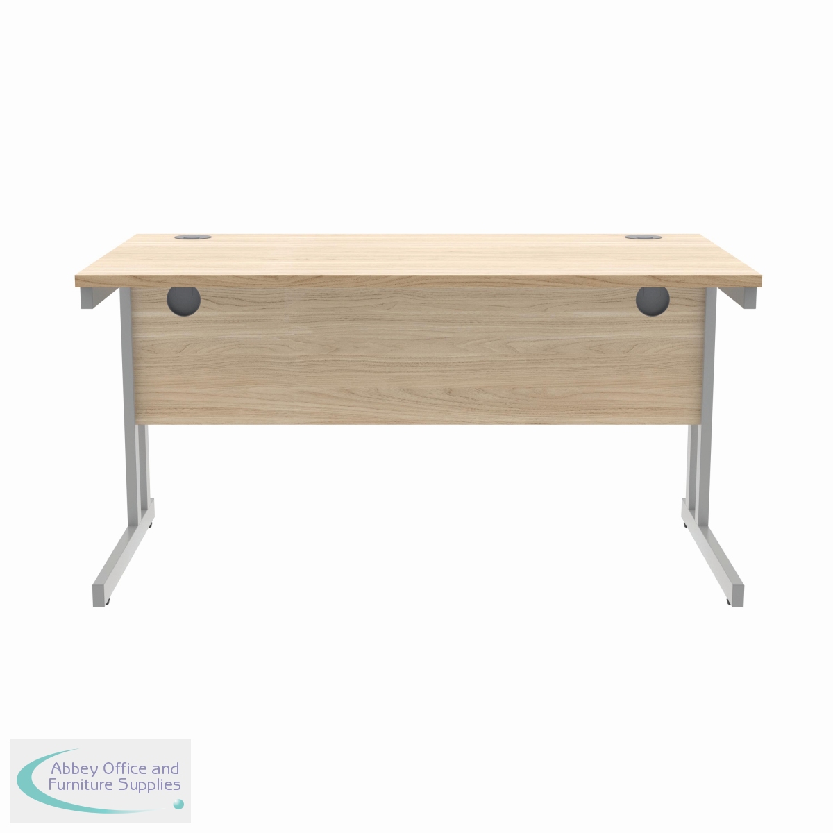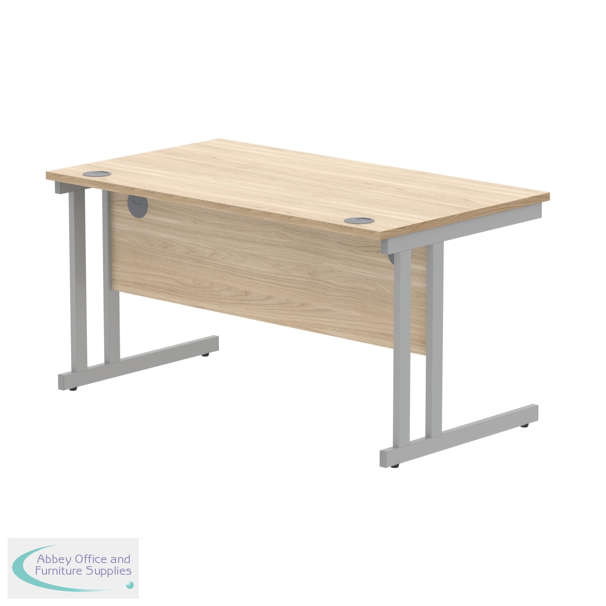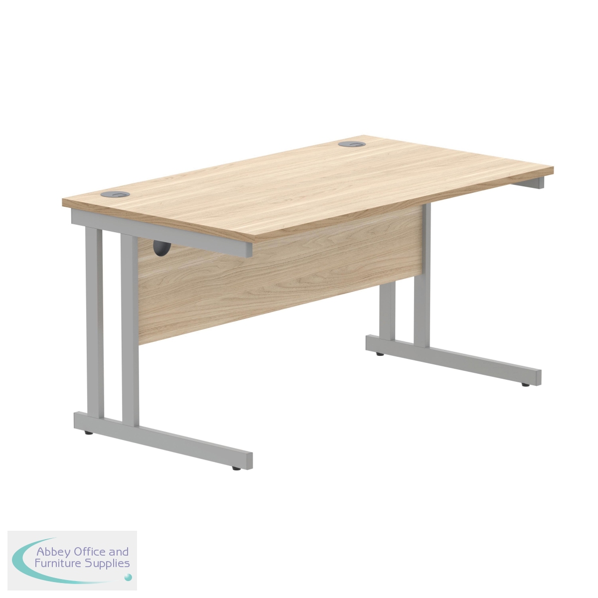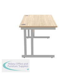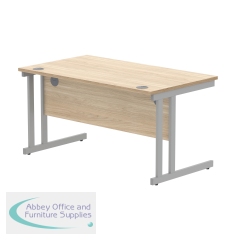 KF822220 - Polaris Rectangular Double Upright Cantilever Desk 1400x800x730mm Canadian Oak/Silver KF822220