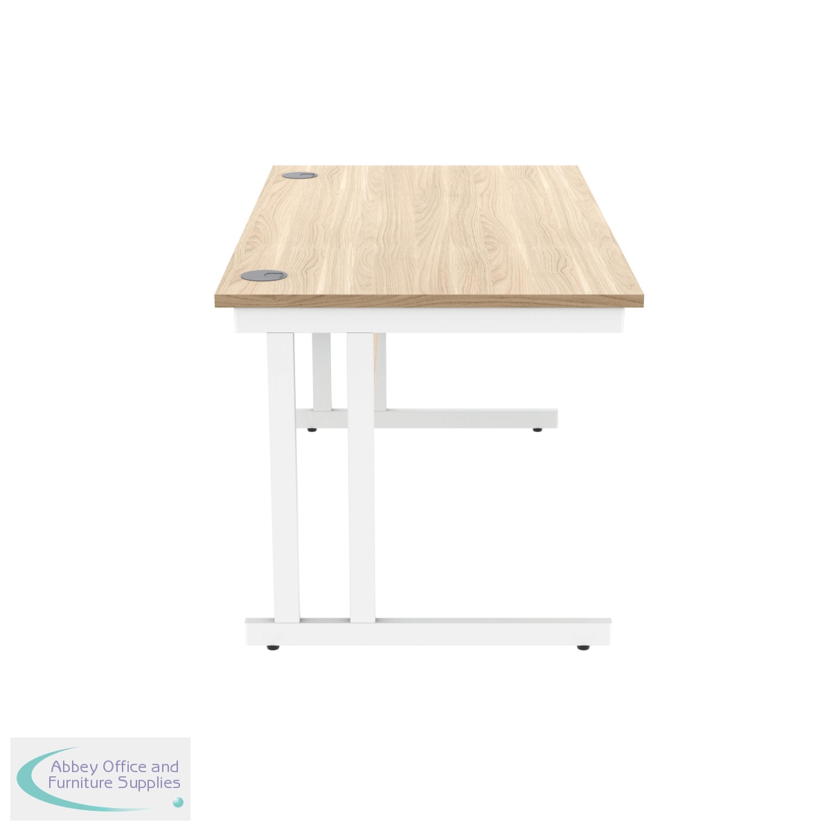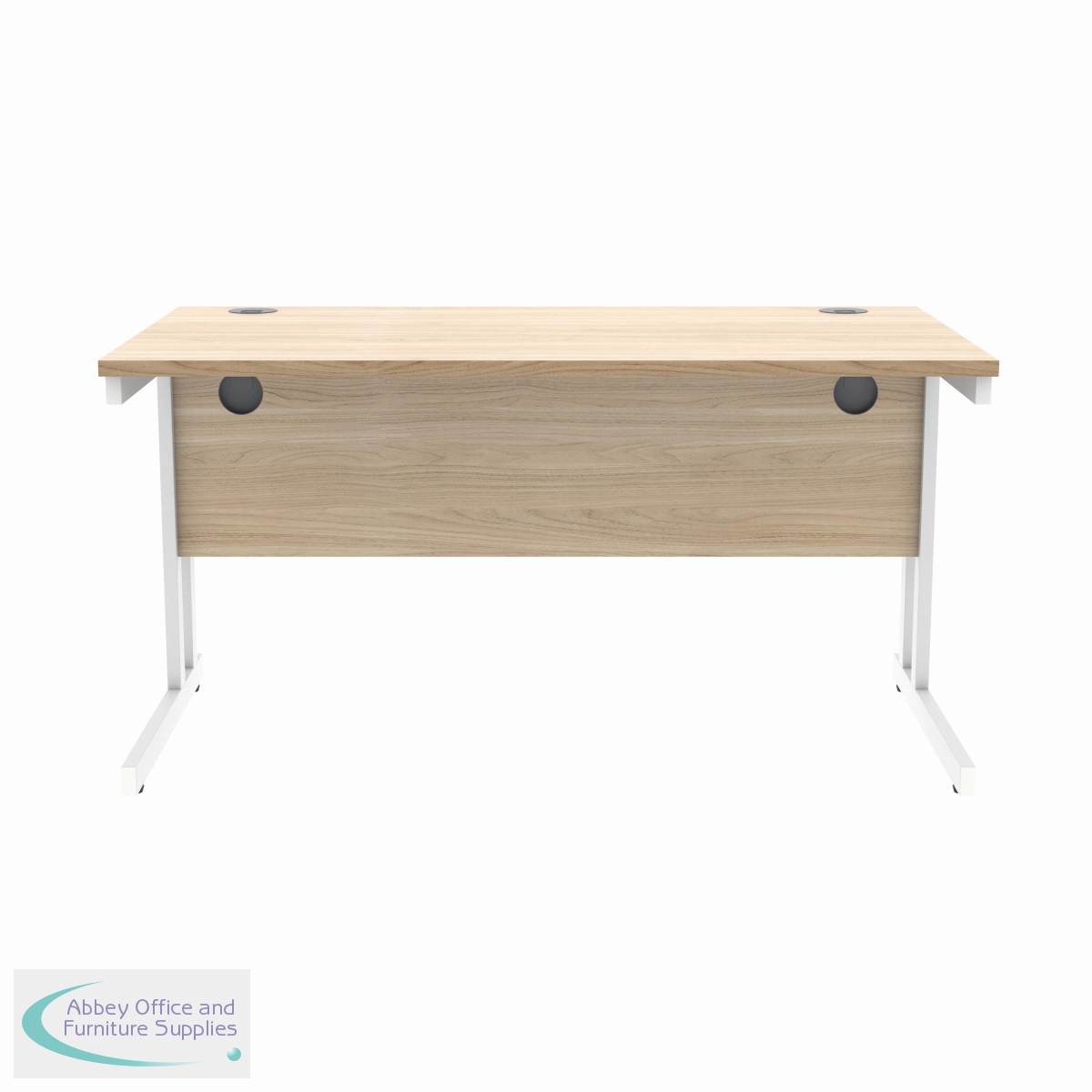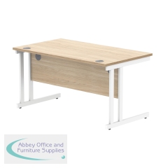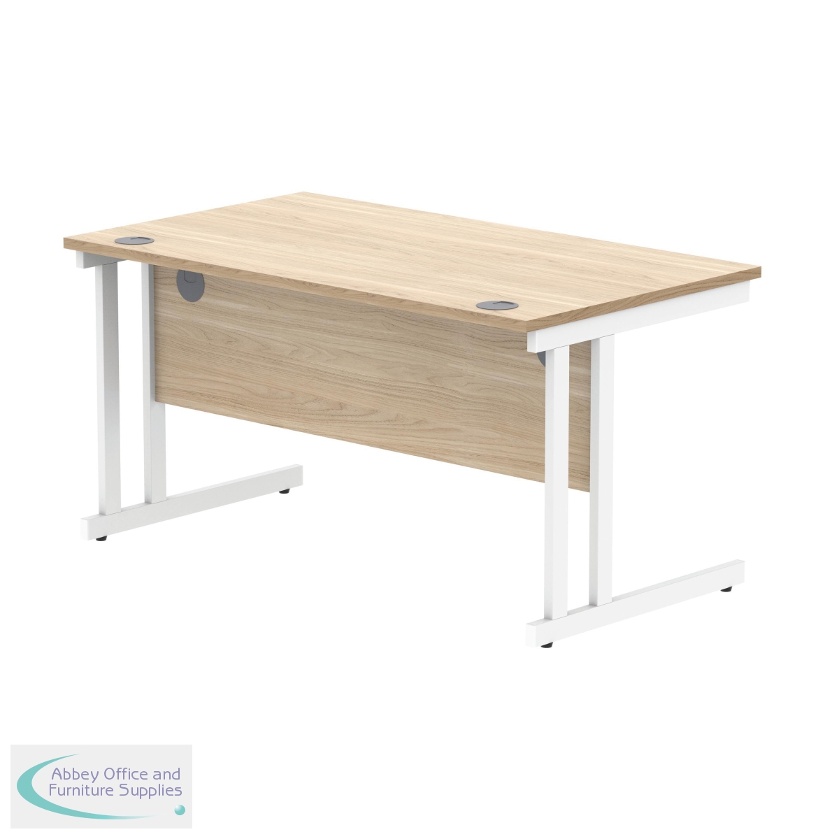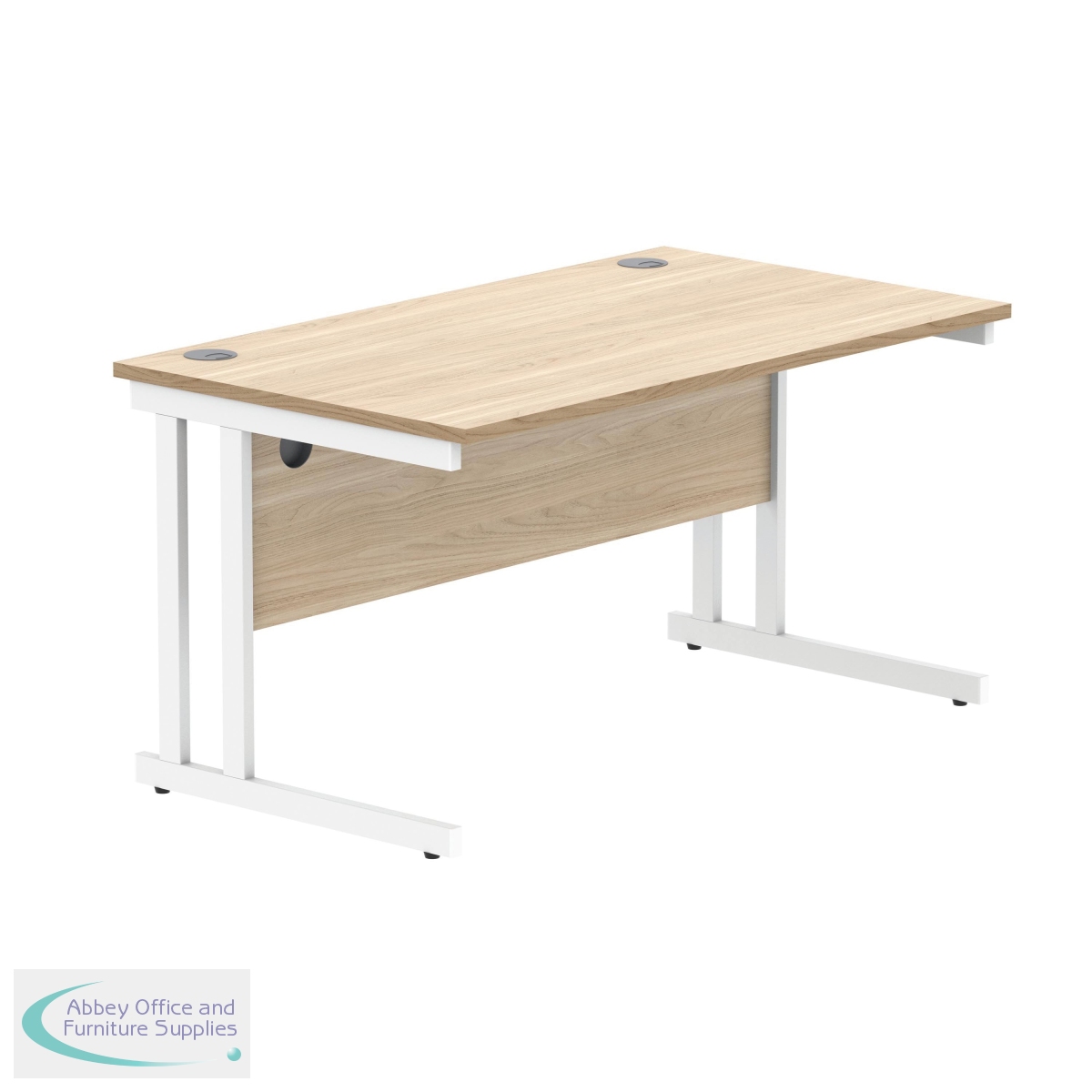 KF822300 - Polaris Rectangular Double Upright Cantilever Desk 1400x800x730mm Canadian Oak/White KF822300