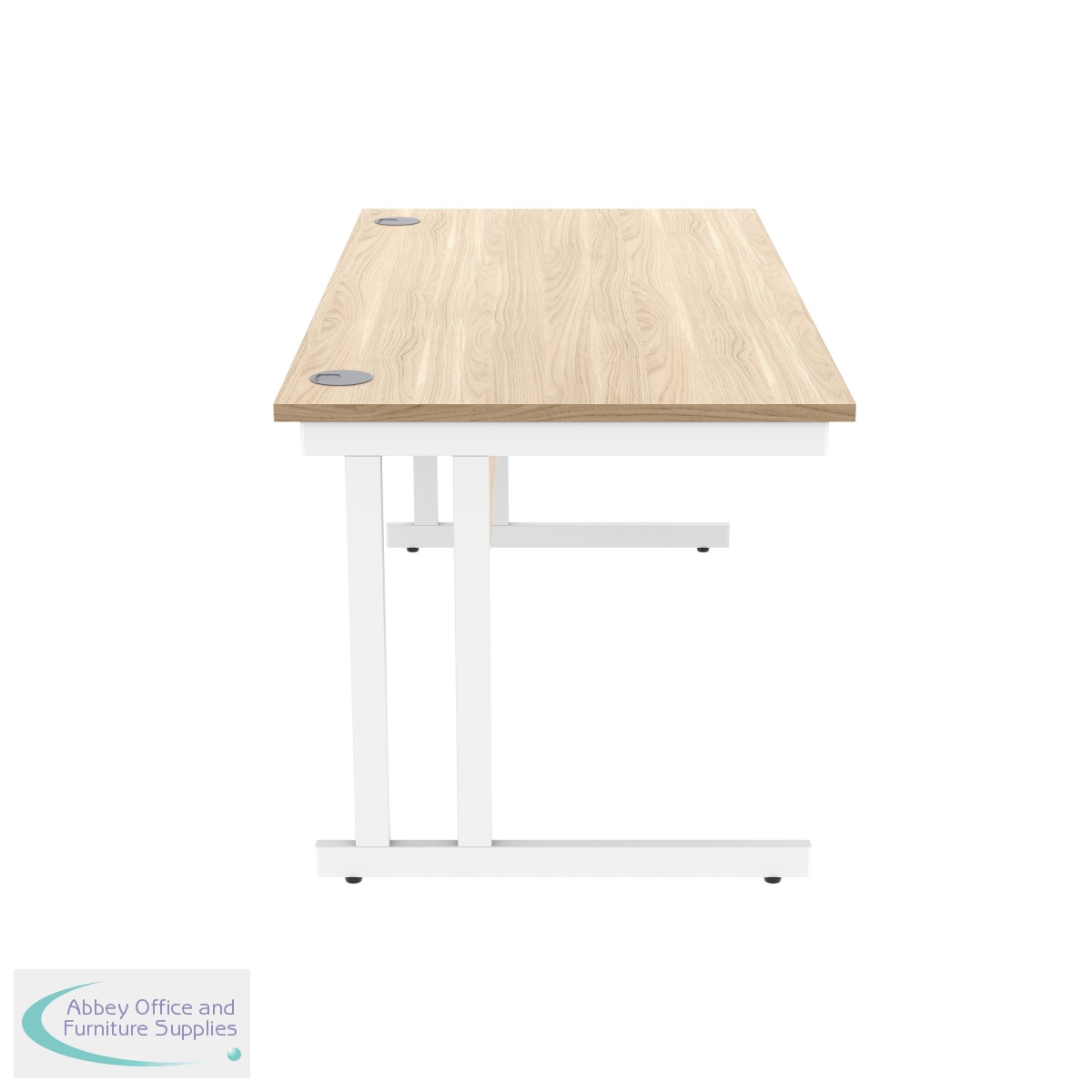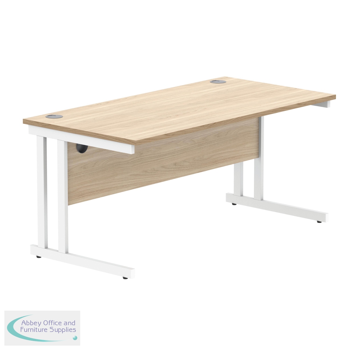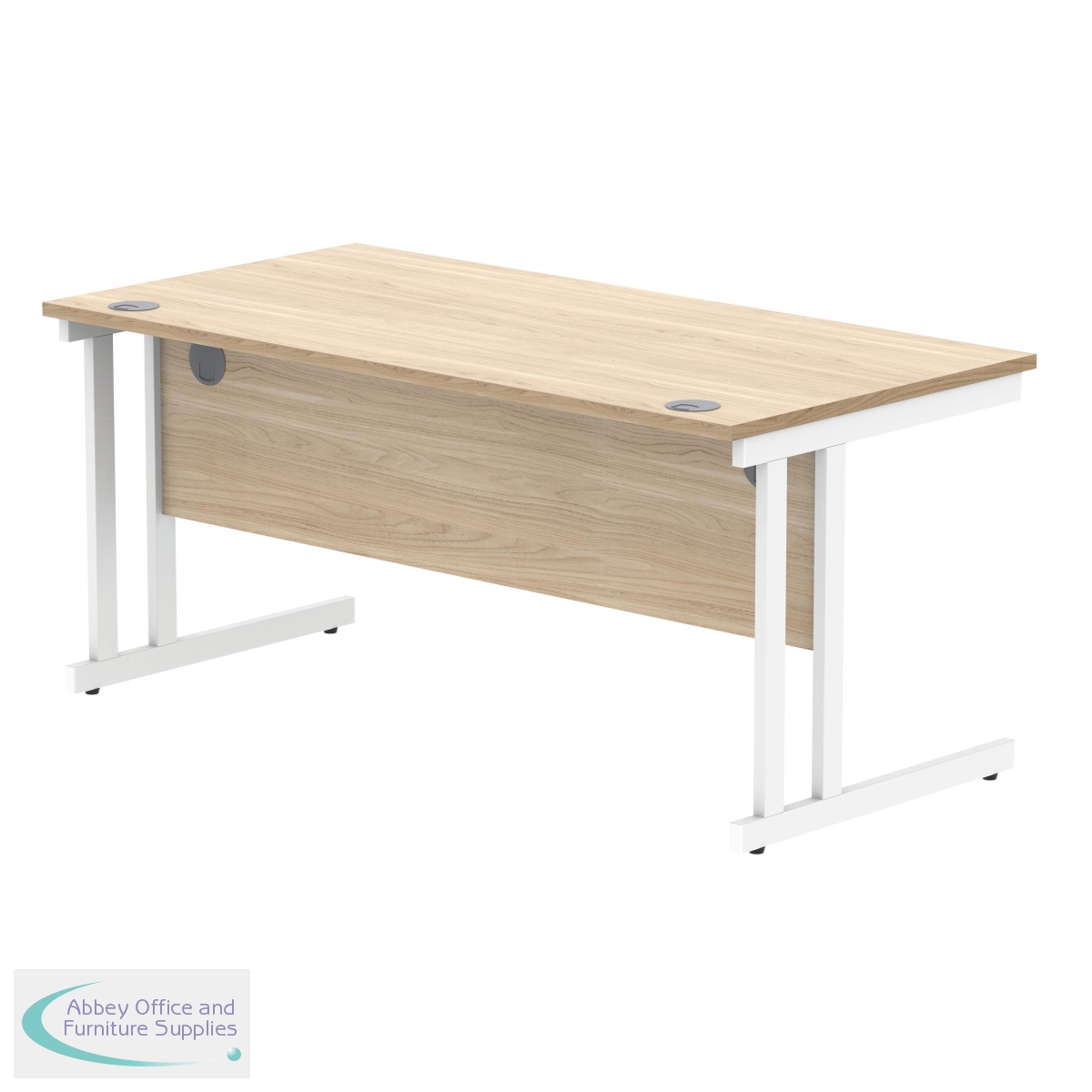 KF822310 - Polaris Rectangular Double Upright Cantilever Desk 1600x800x730mm Canadian Oak/White KF822310