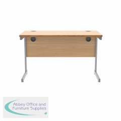 KF882336 - Polaris Rectangular Single Upright Cantilever Desk 1200x600x730mm Norwegian Beech/Silver KF882336