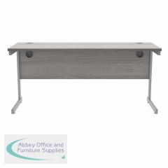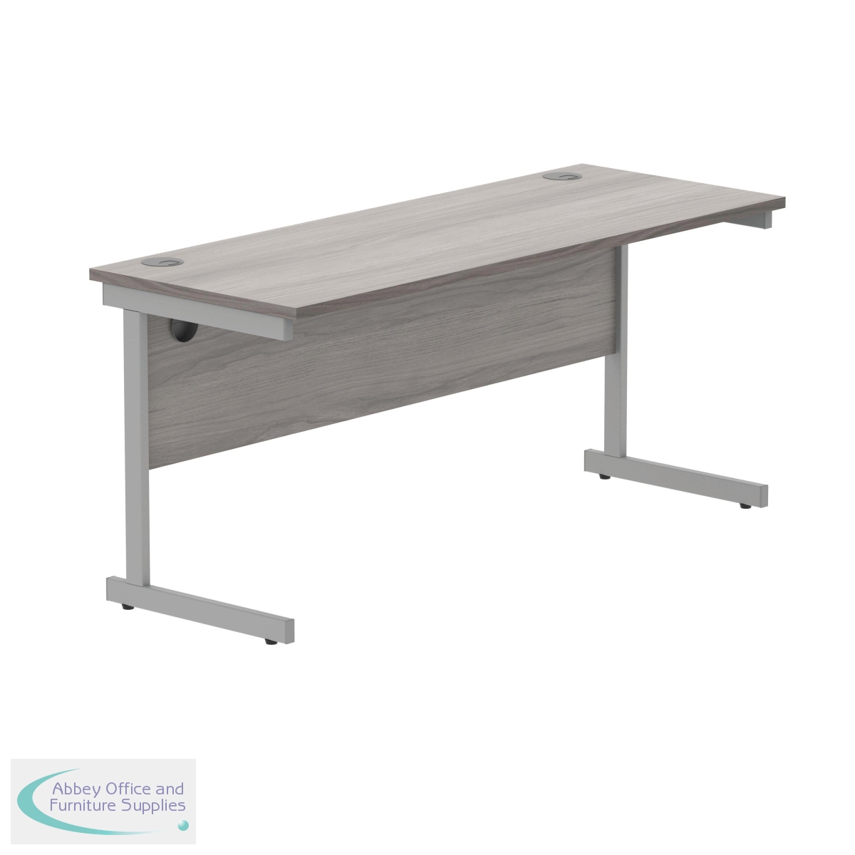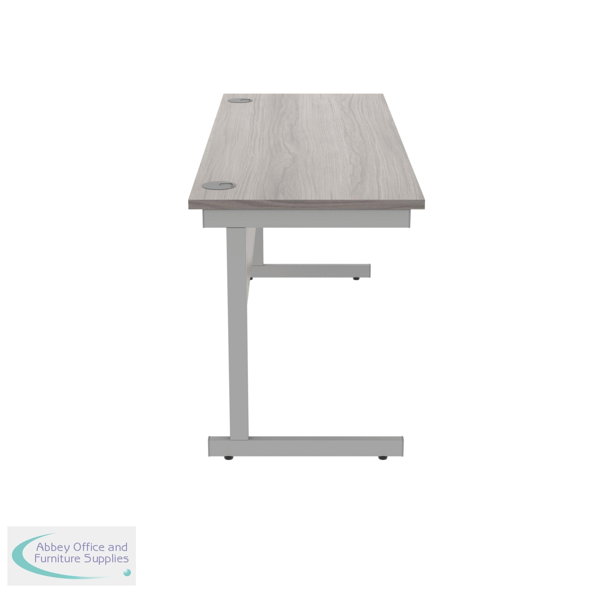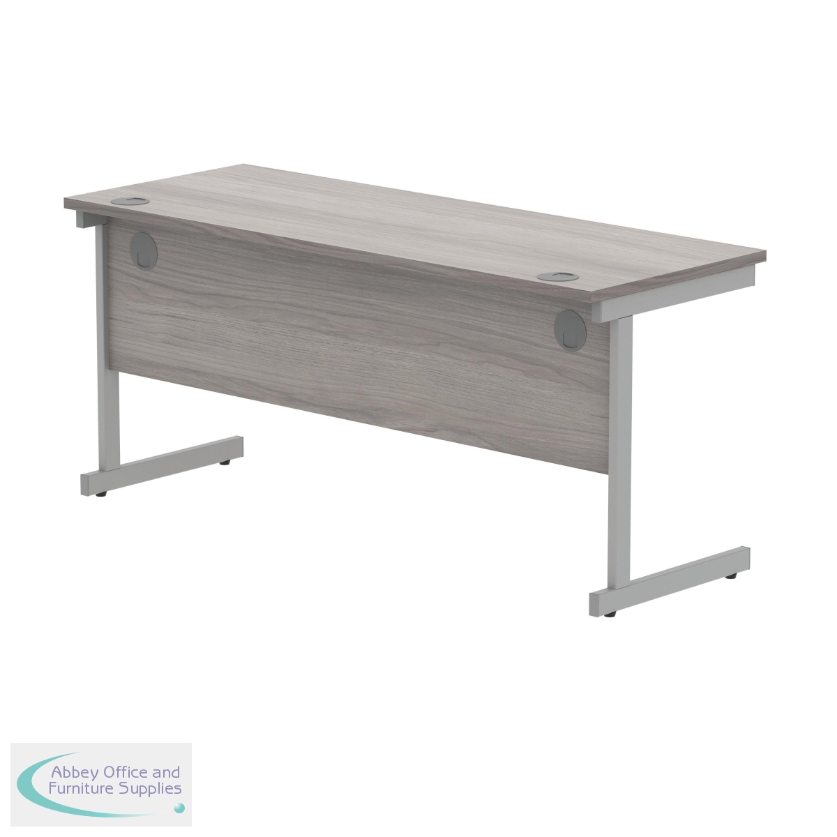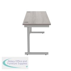 KF882341 - Polaris Rectangular Single Upright Cantilever Desk 1600x600x730mm Alaskan Grey Oak/Silver KF882341