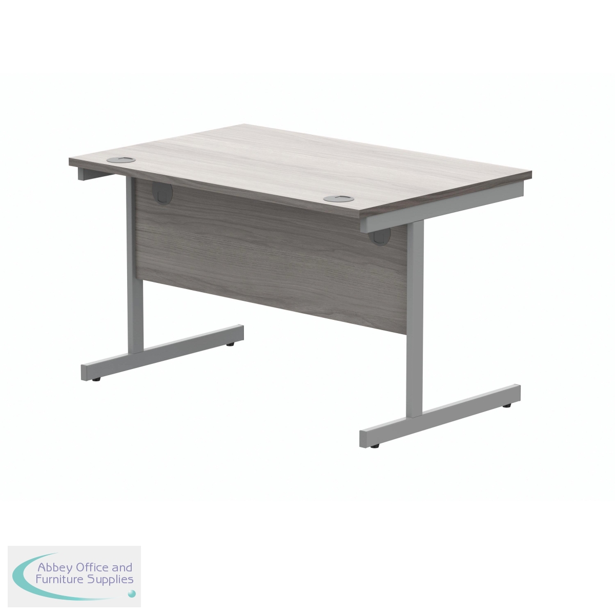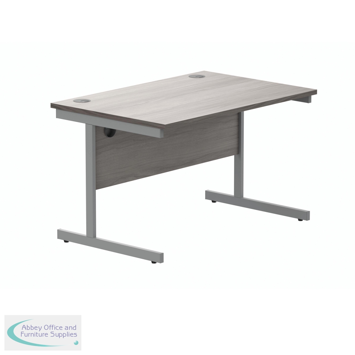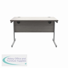 KF882342 - Polaris Rectangular Single Upright Cantilever Desk 1200x800x730mm Alaskan Grey Oak/Silver KF882342