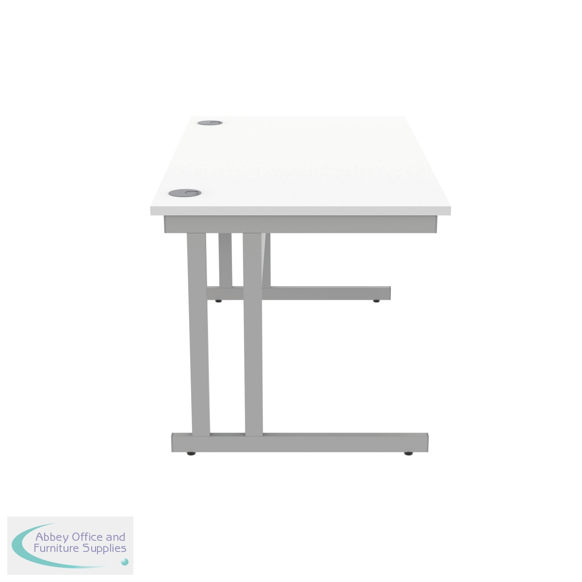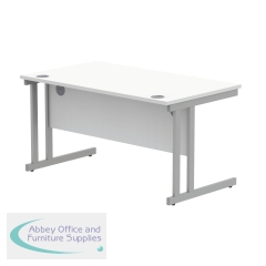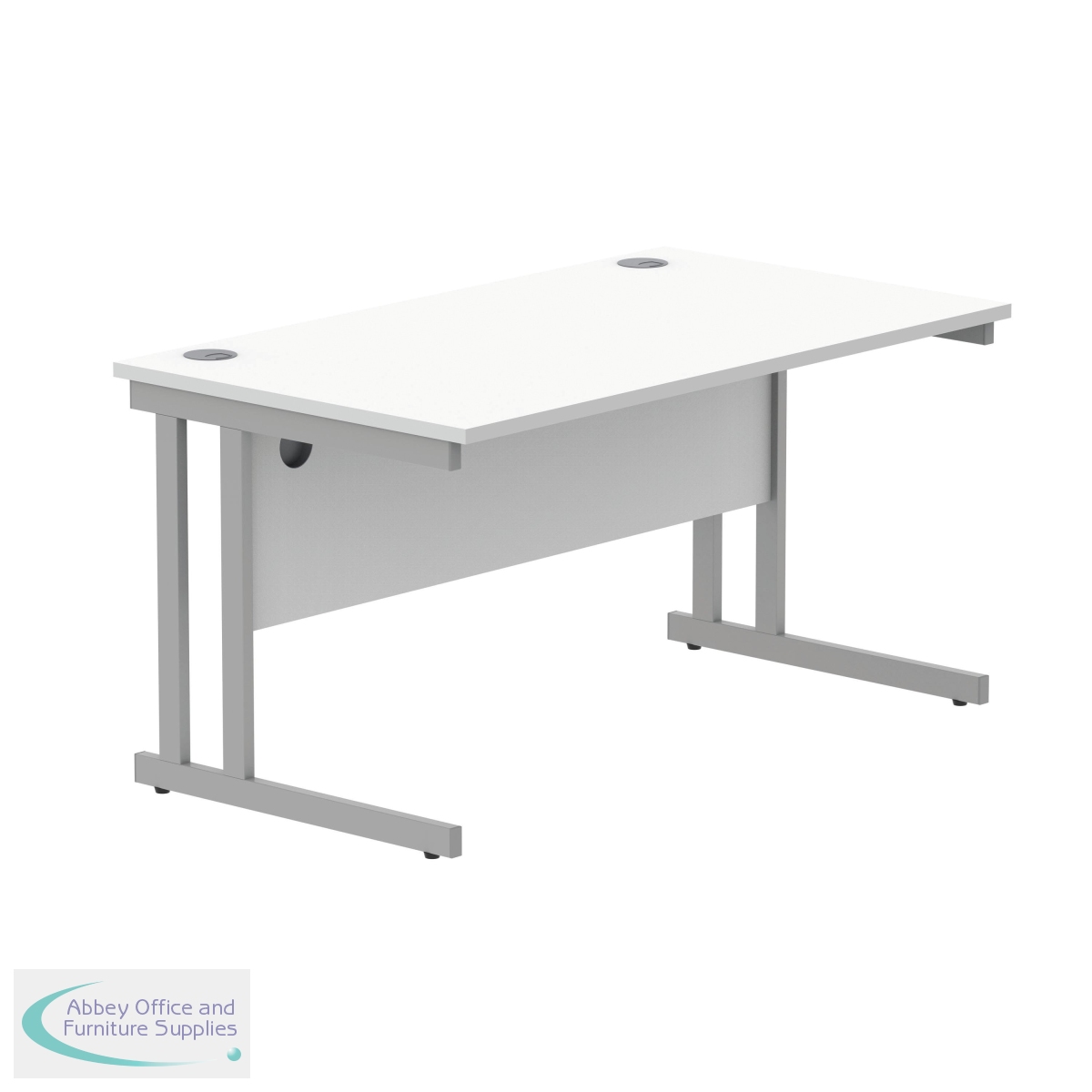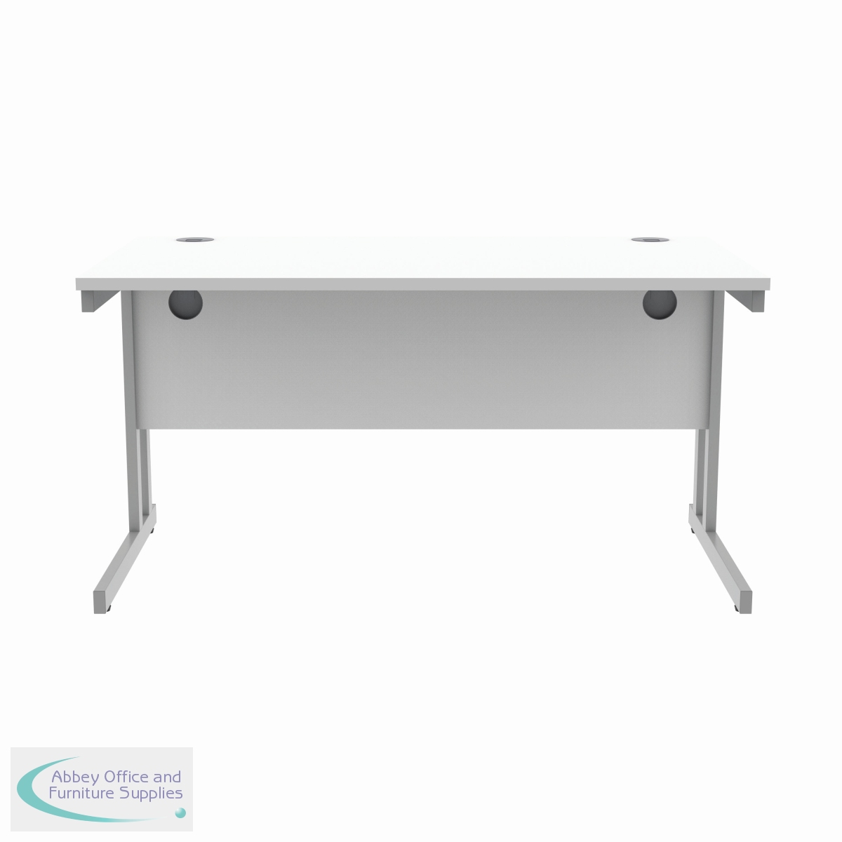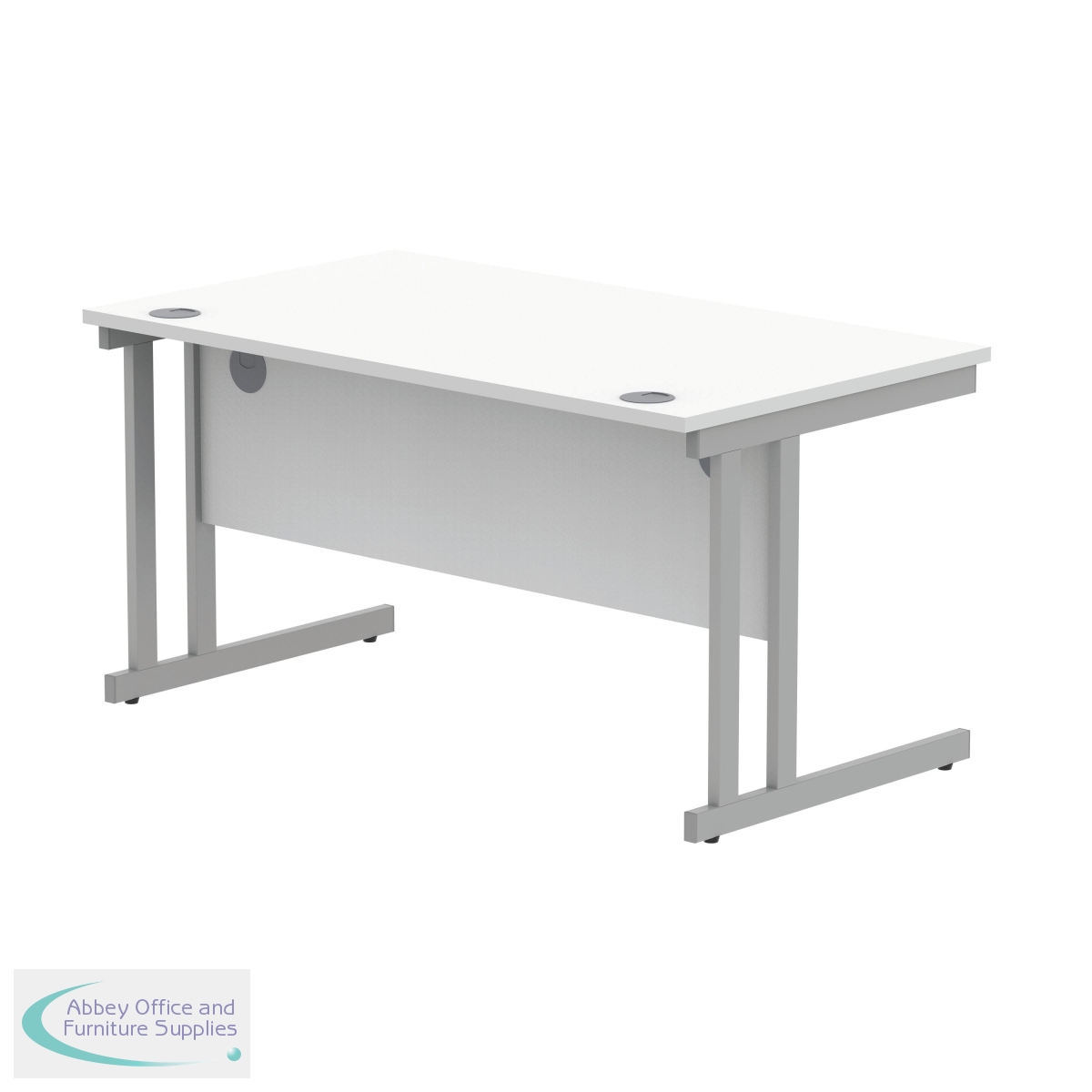 KF882348 - Polaris Rectangular Double Upright Cantilever Desk 1400x800x730mm Arctic White/Silver KF882348