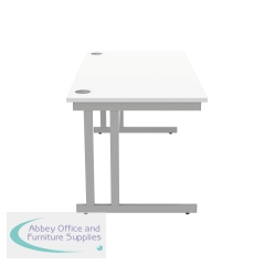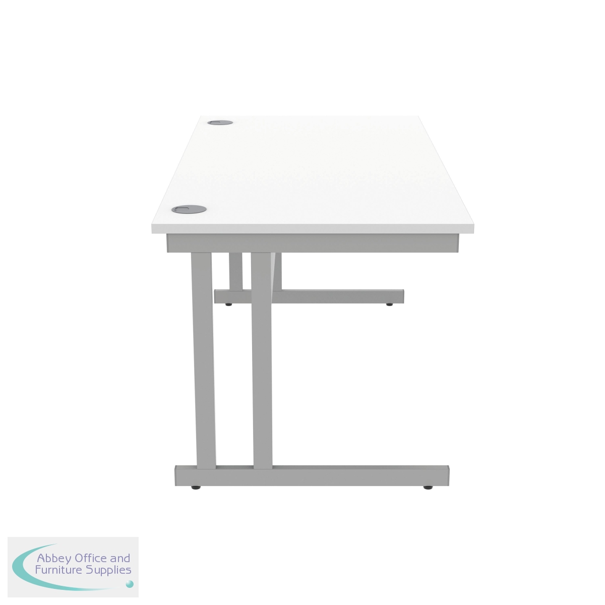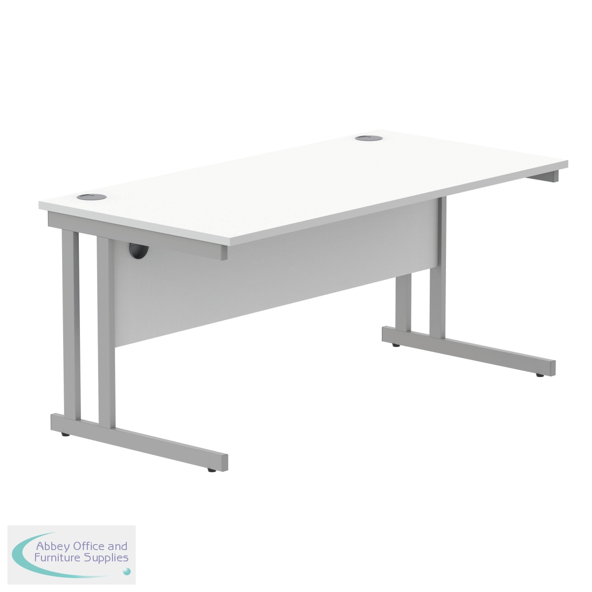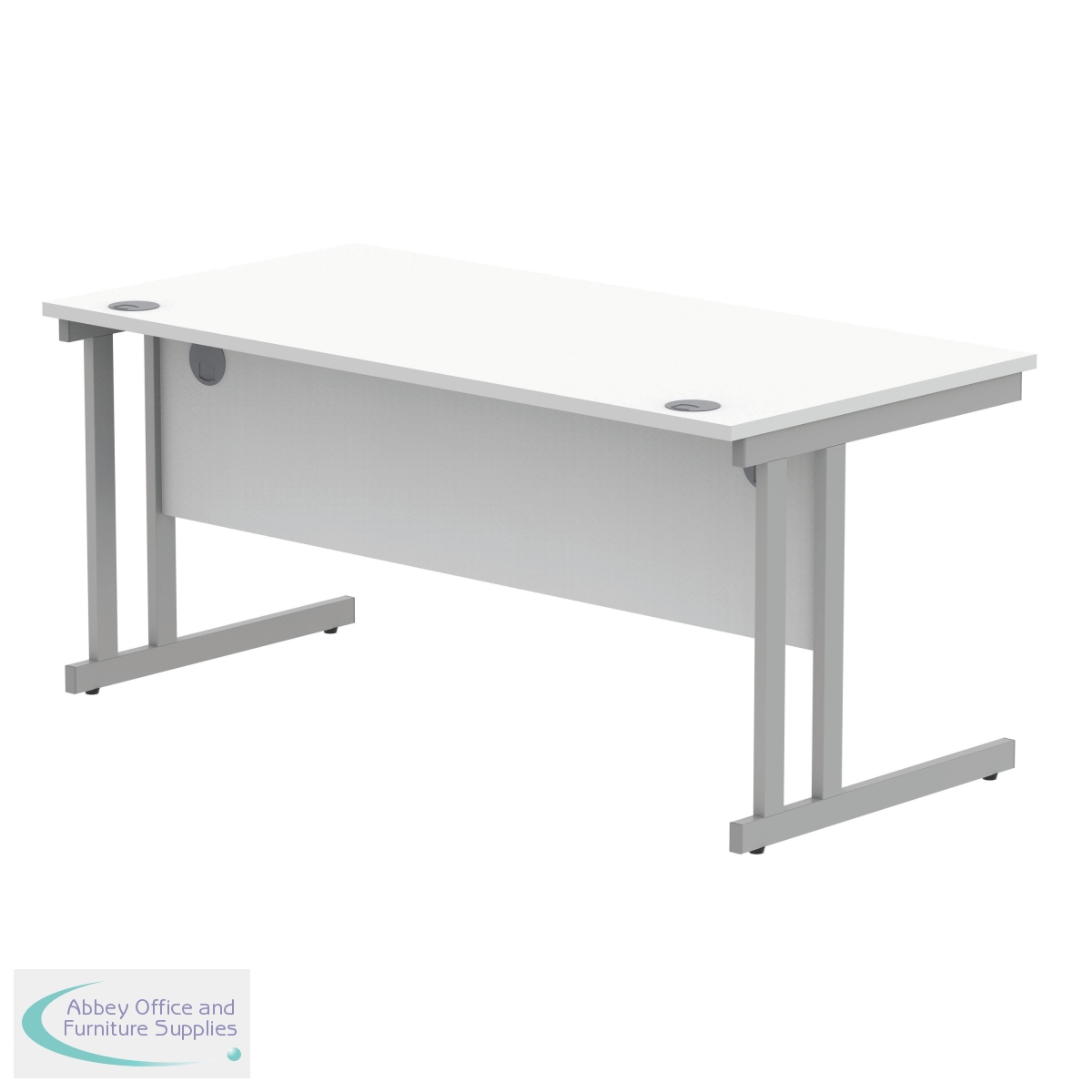 KF882349 - Polaris Rectangular Double Upright Cantilever Desk 1600x800x730mm Arctic White/Silver KF882349