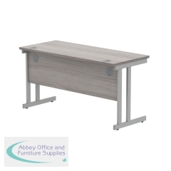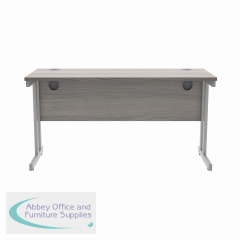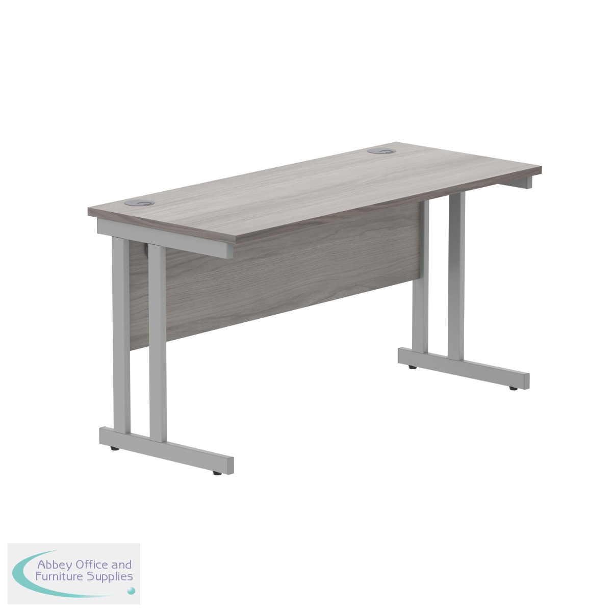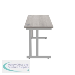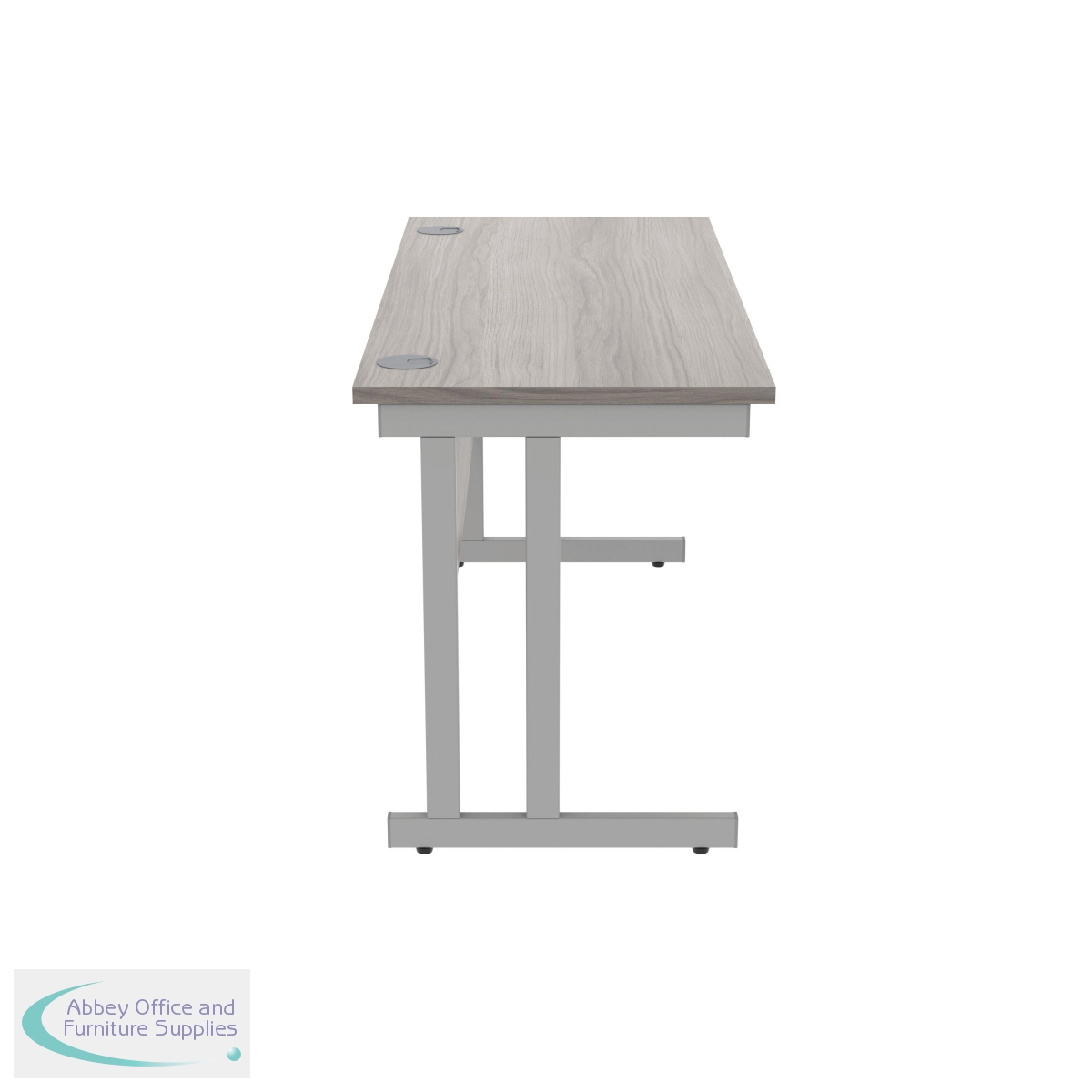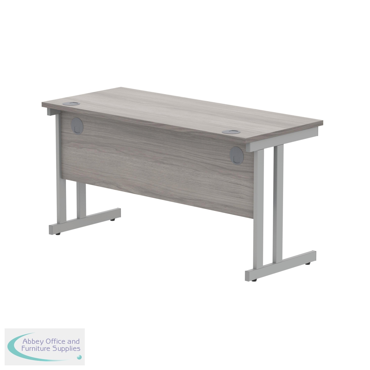 KF882361 - Polaris Rectangular Double Upright Cantilever Desk 1400x600x730mm Alaskan Grey Oak/Silver KF882361