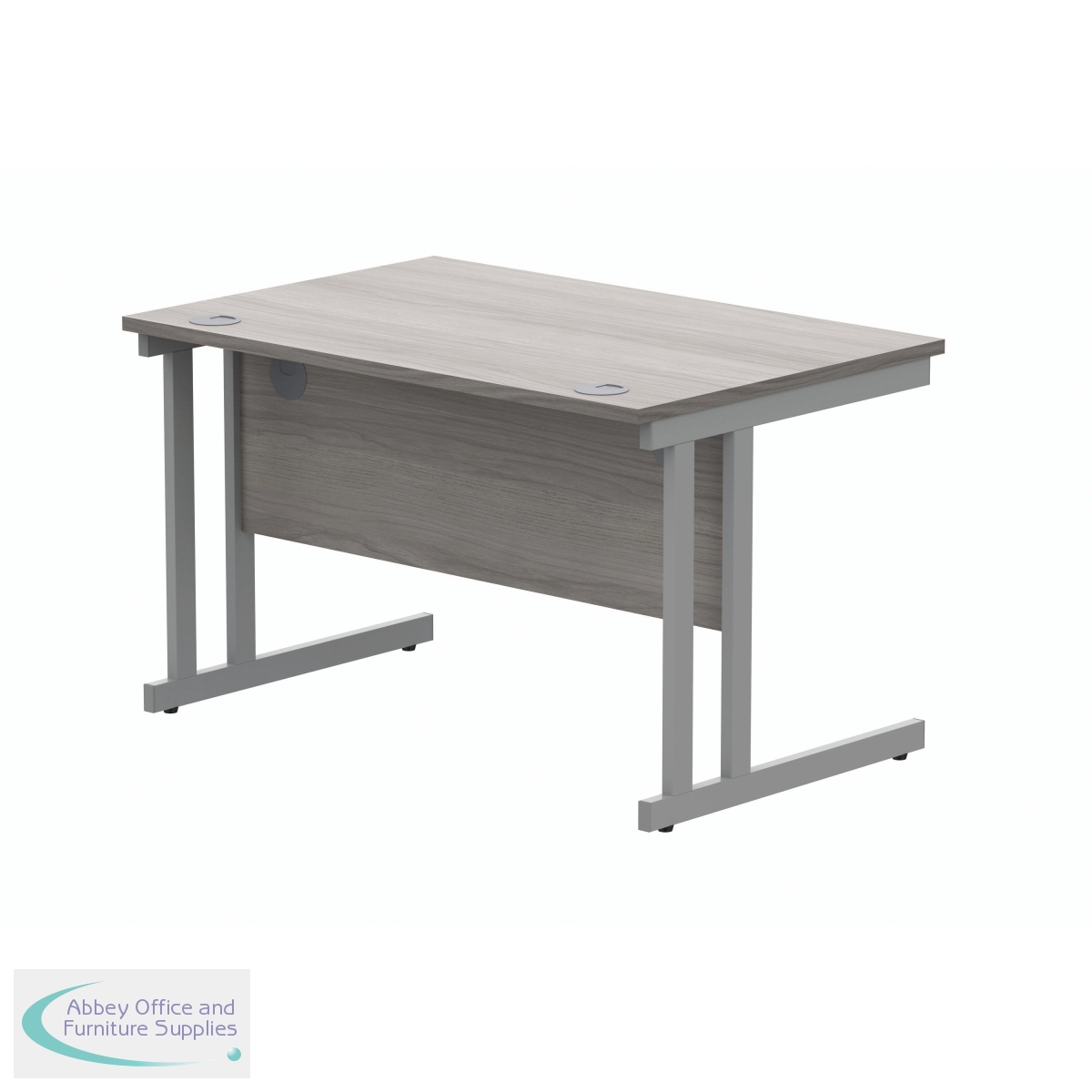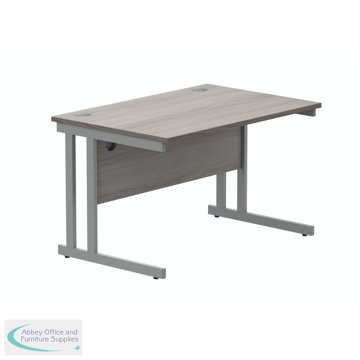 KF882363 - Polaris Rectangular Double Upright Cantilever Desk 1200x800x730mm Alaskan Grey Oak/Silver KF882363