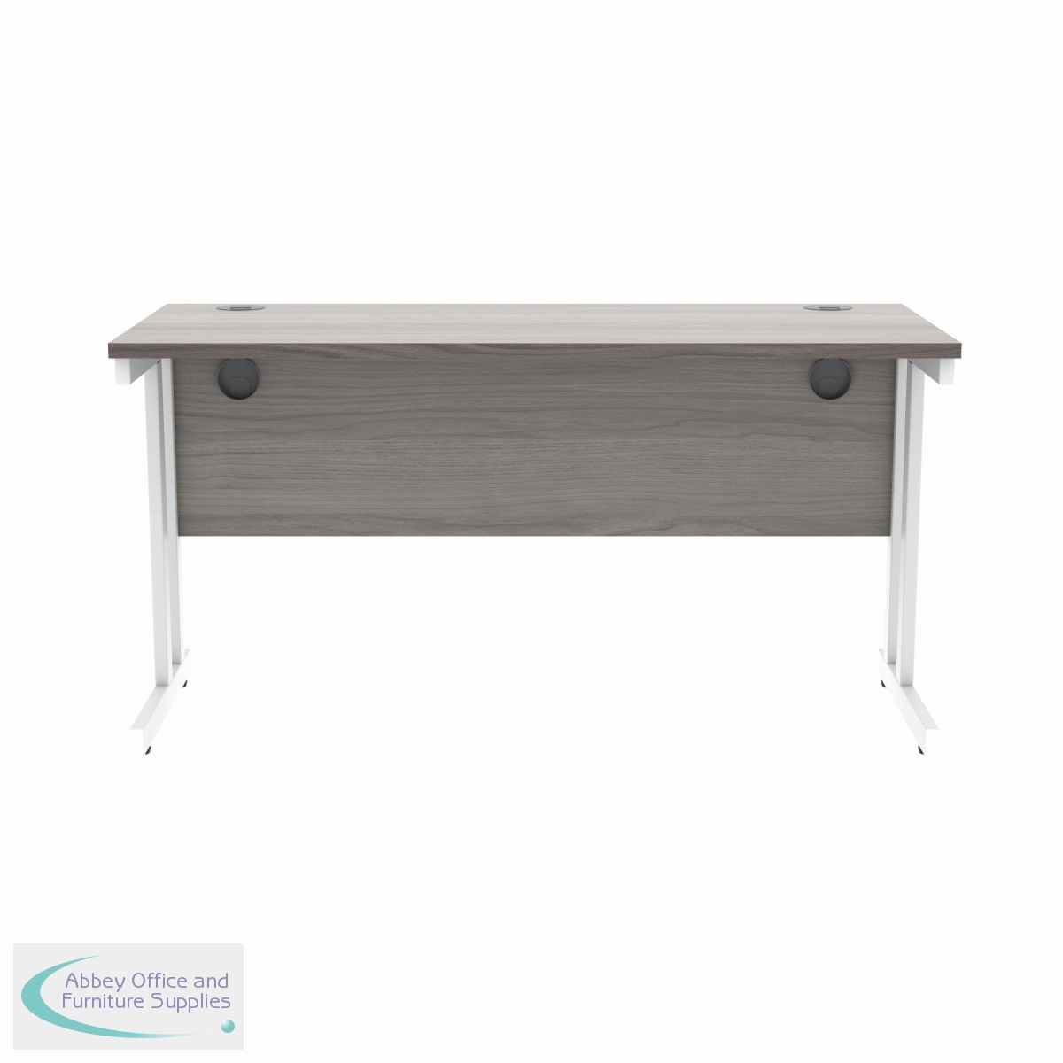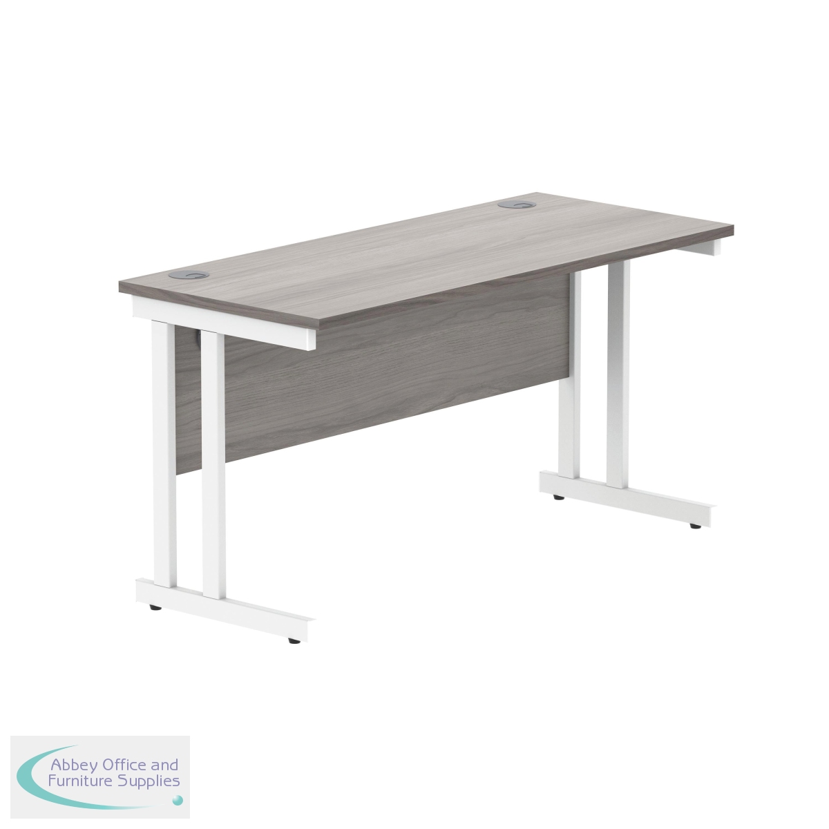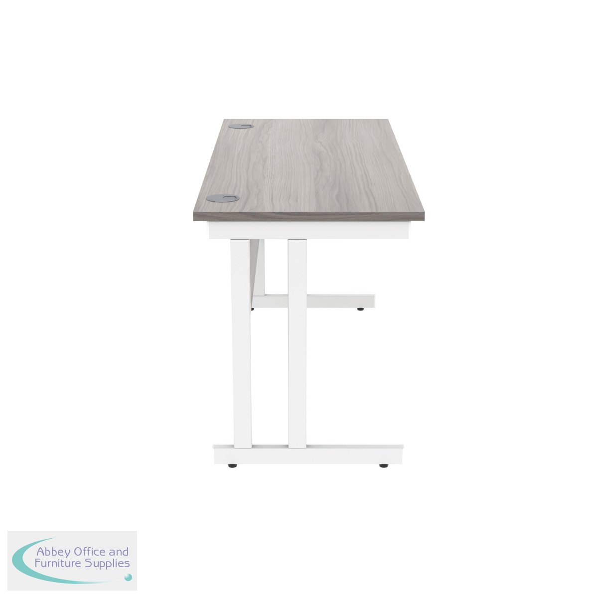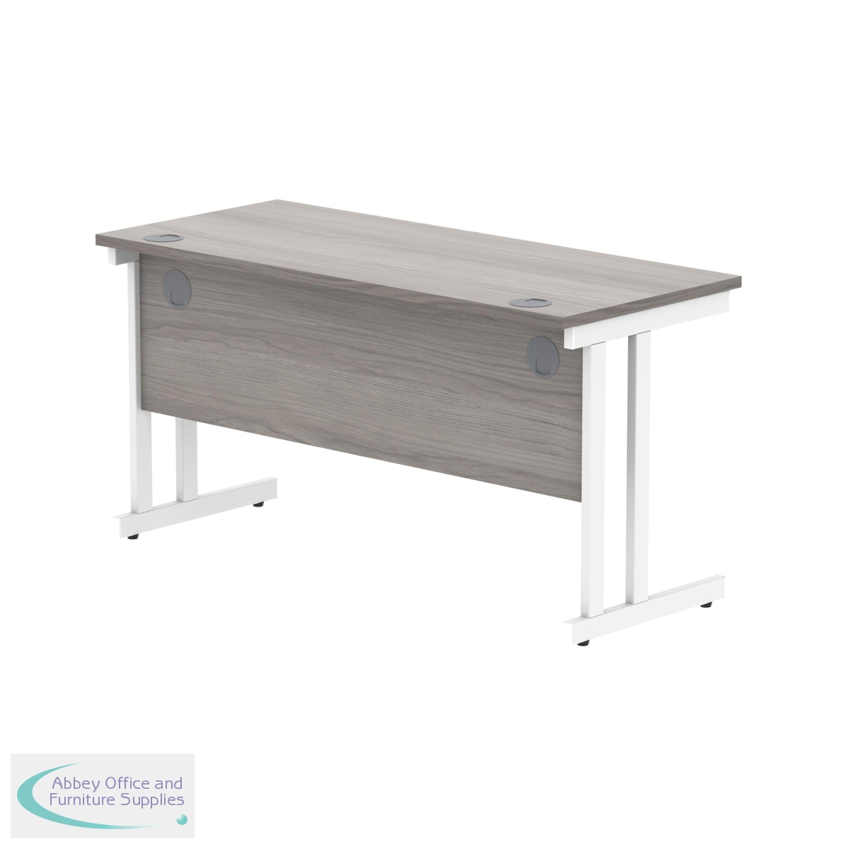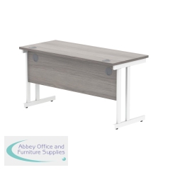KF882369 - Polaris Rectangular Double Upright Cantilever Desk 1400x600x730mm Alaskan Grey Oak/White KF882369