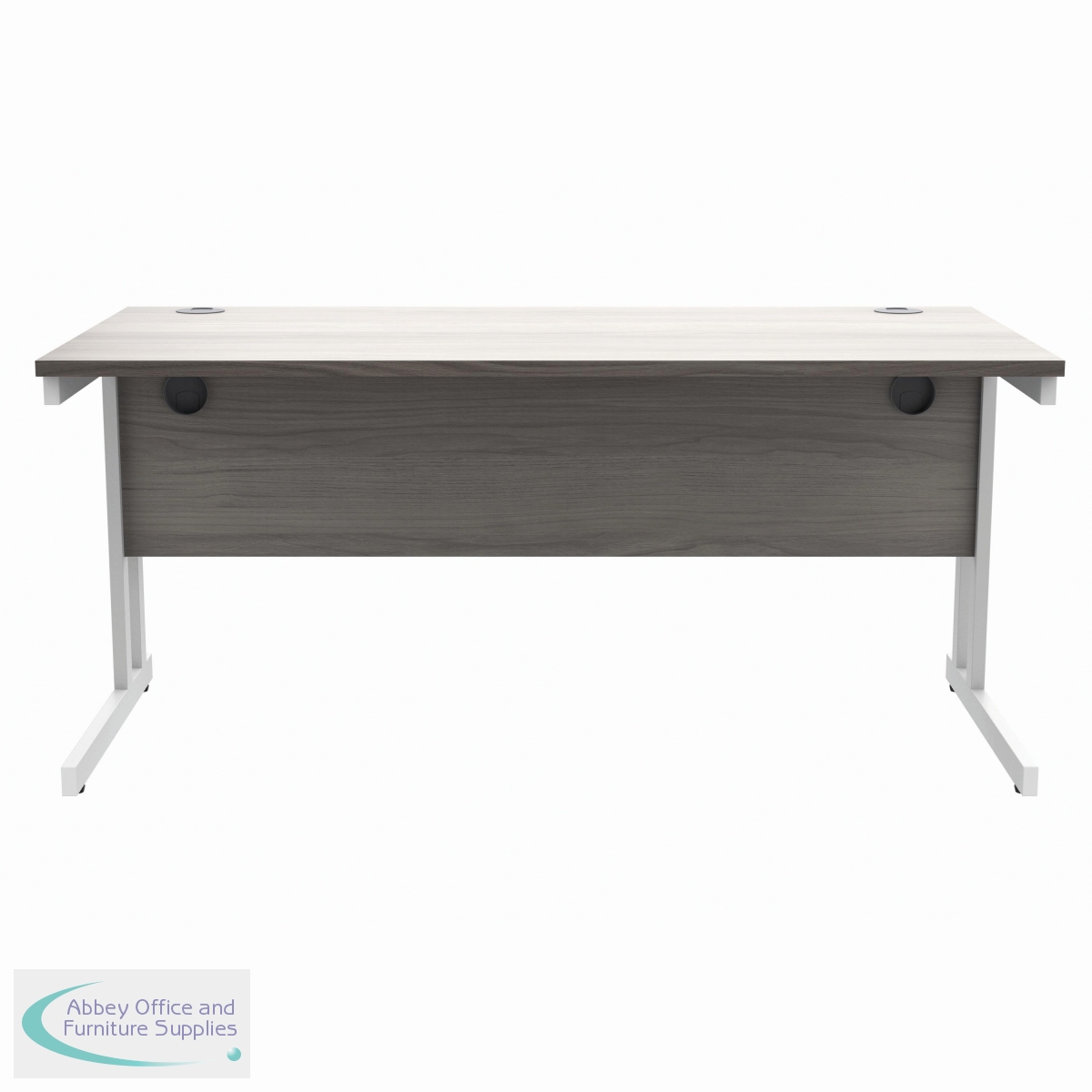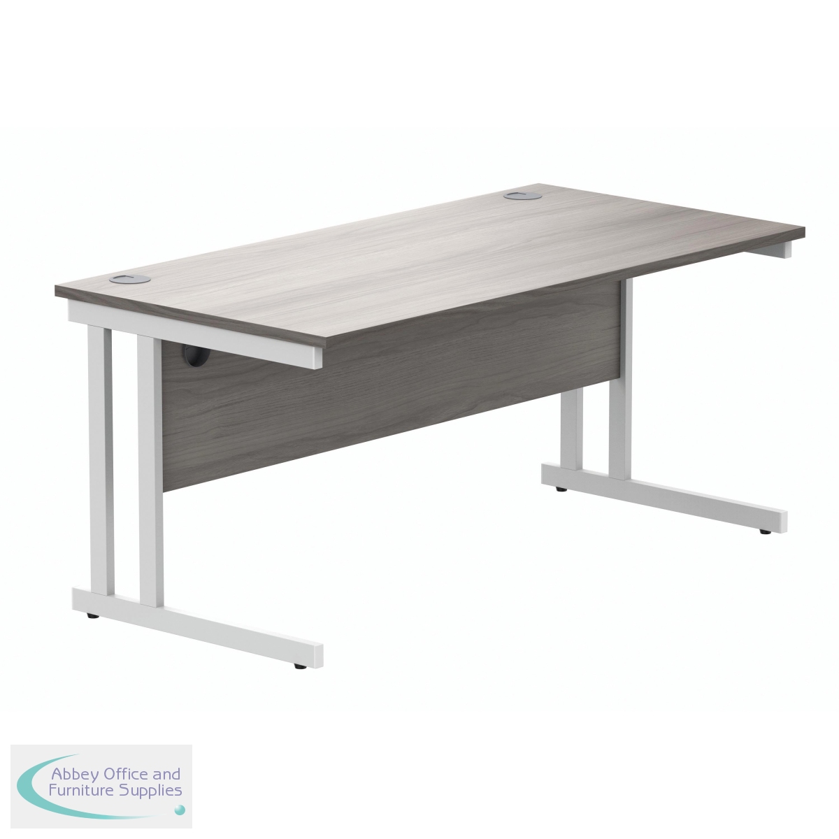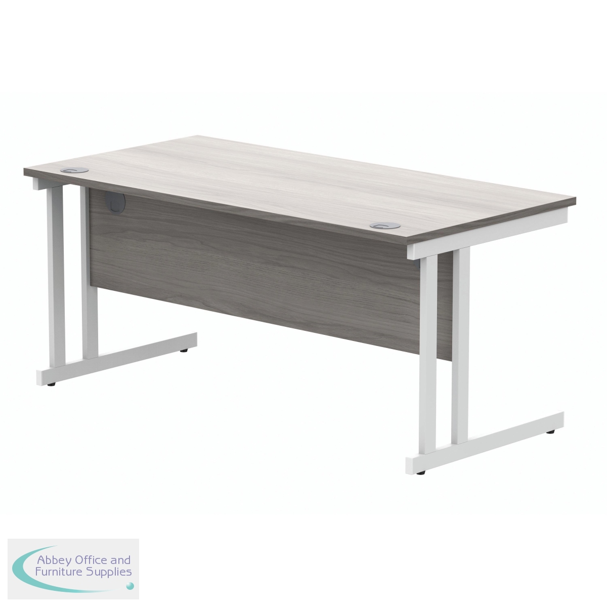 KF882371 - Polaris Rectangular Double Upright Cantilever Desk 1600x800x730mm Alaskan Grey Oak/White KF882371