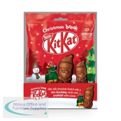 The KitKat Santa Chocolate Sharing Bag contains 5 mini milk chocolate Santa figures with a crispy wafer and milk chocolate filling. These Santas use sustainably sourced cocoa from the Nestle Cocoa Plan. Great for sharing with friends and family this Christmas. No artificial colours, flavours or preservatives.