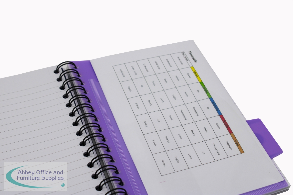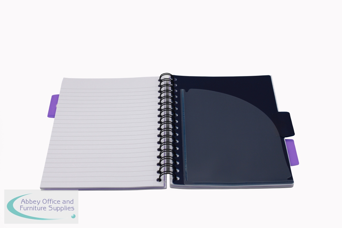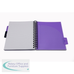 The Europa Splash A5 Project book with a stylish polypropylene cover and three repositionable, polypropylene dividers is ideal for organising school and office topics. The wire binding allows the book to lie flat for ease of use and the pages are micro-perforated for easy removal. Featuring 200 lined pages of quality 80gsm paper which is feint ruled for neat note-taking, these purple project books are supplied in a pack of 3.