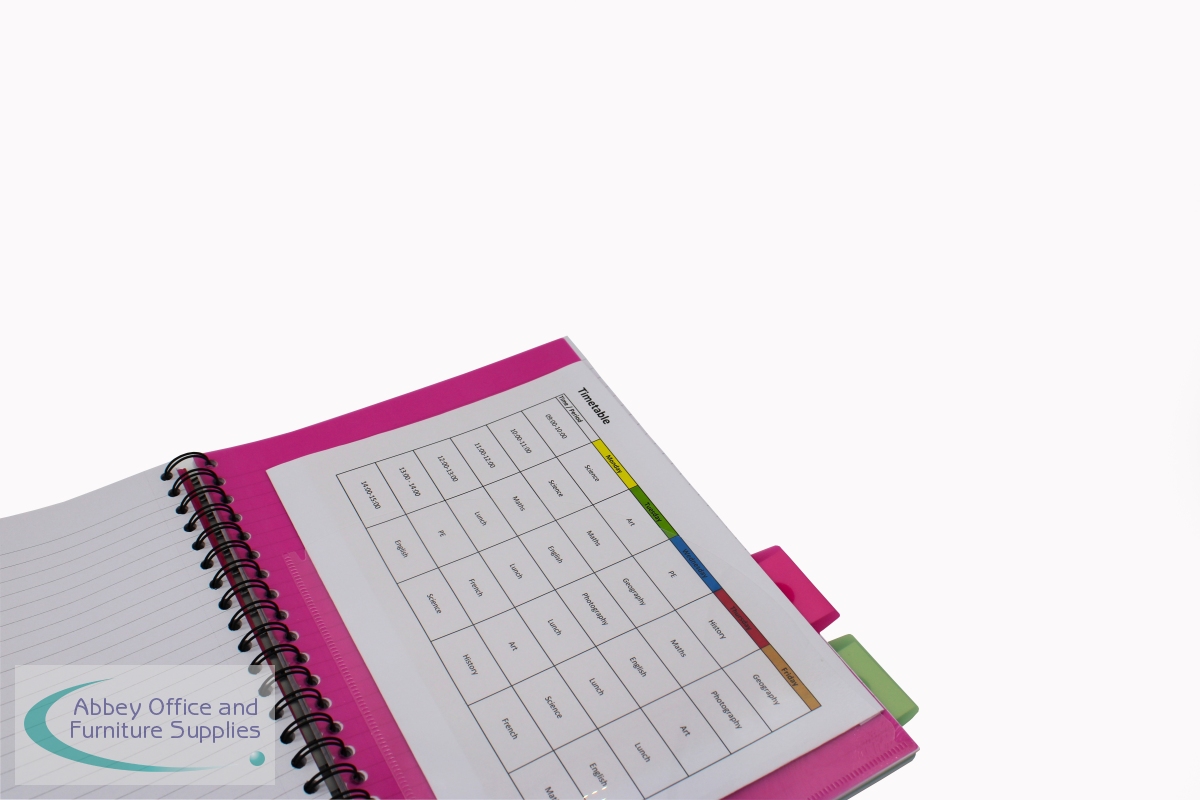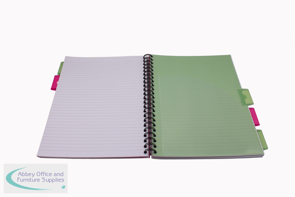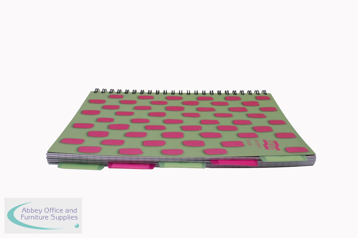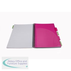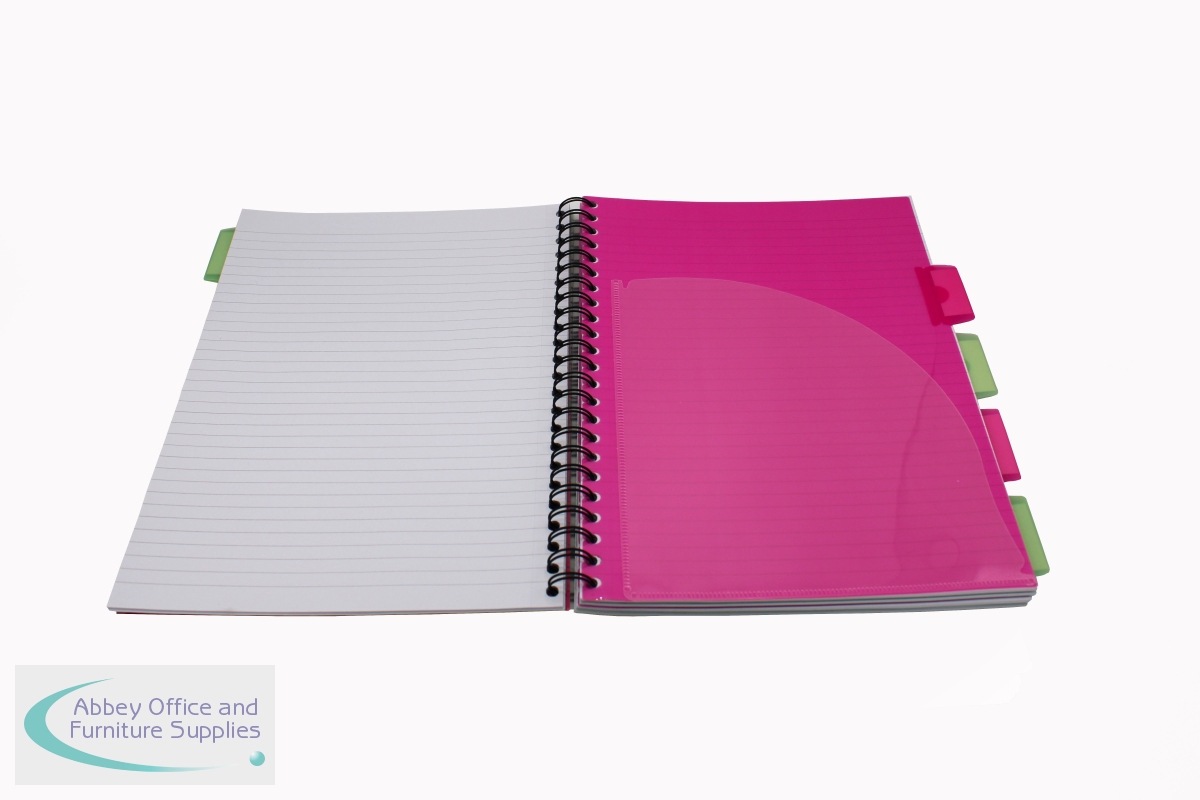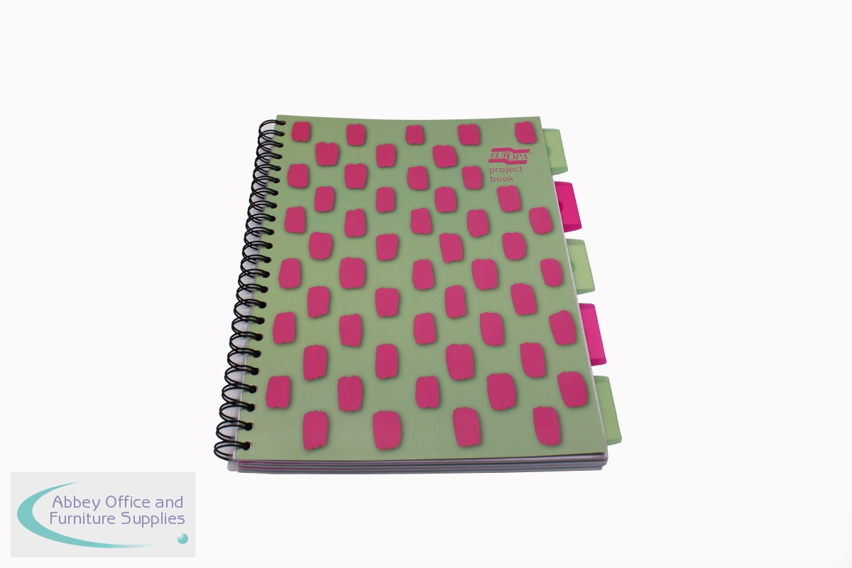 The Europa Splash A4 Project book with a stylish polypropylene cover and five repositionable, polypropylene dividers is ideal for organising school and office topics. The wire binding allows the book to lie flat for ease of use and the pages are micro-perforated for easy removal. Featuring 200 lined pages of quality 80gsm paper which is feint ruled for neat note-taking, these pink project books are supplied in a pack of 3.