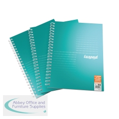 Featuring durable, glossy covers, this A4+ wirebound, hardback notebook contains 200 pages which are ruled with 8mm feint lines and margin. The climate-friendly, high-quality, 80gsm, white paper is suitable for writing on both sides without ink show-through. Featuring wire binding which allows the notebook to lie flat while open on any page and micro-perforated sheets for easy removal. Supplied in a pack of 3 in Mint.