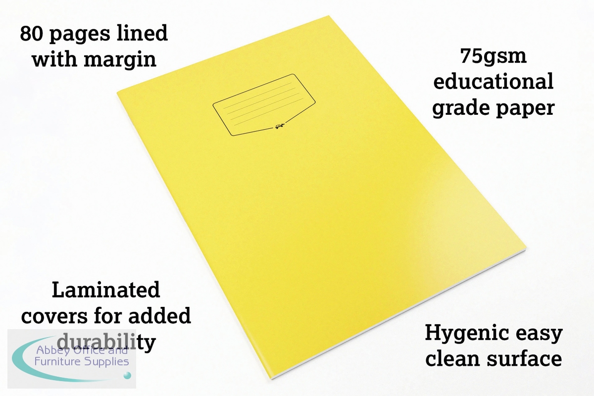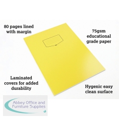 Designed for classroom use, this Silvine A4+ exercise book contains 80 pages of quality 75gsm paper, which is feint ruled with a margin for neat note taking in lessons. The unique Tough Shell covers are matte laminated and triple stitched for extra strength and durability. Ideal for colour coordinating different lessons, this exercise book has yellow covers. This pack contains 25 books.