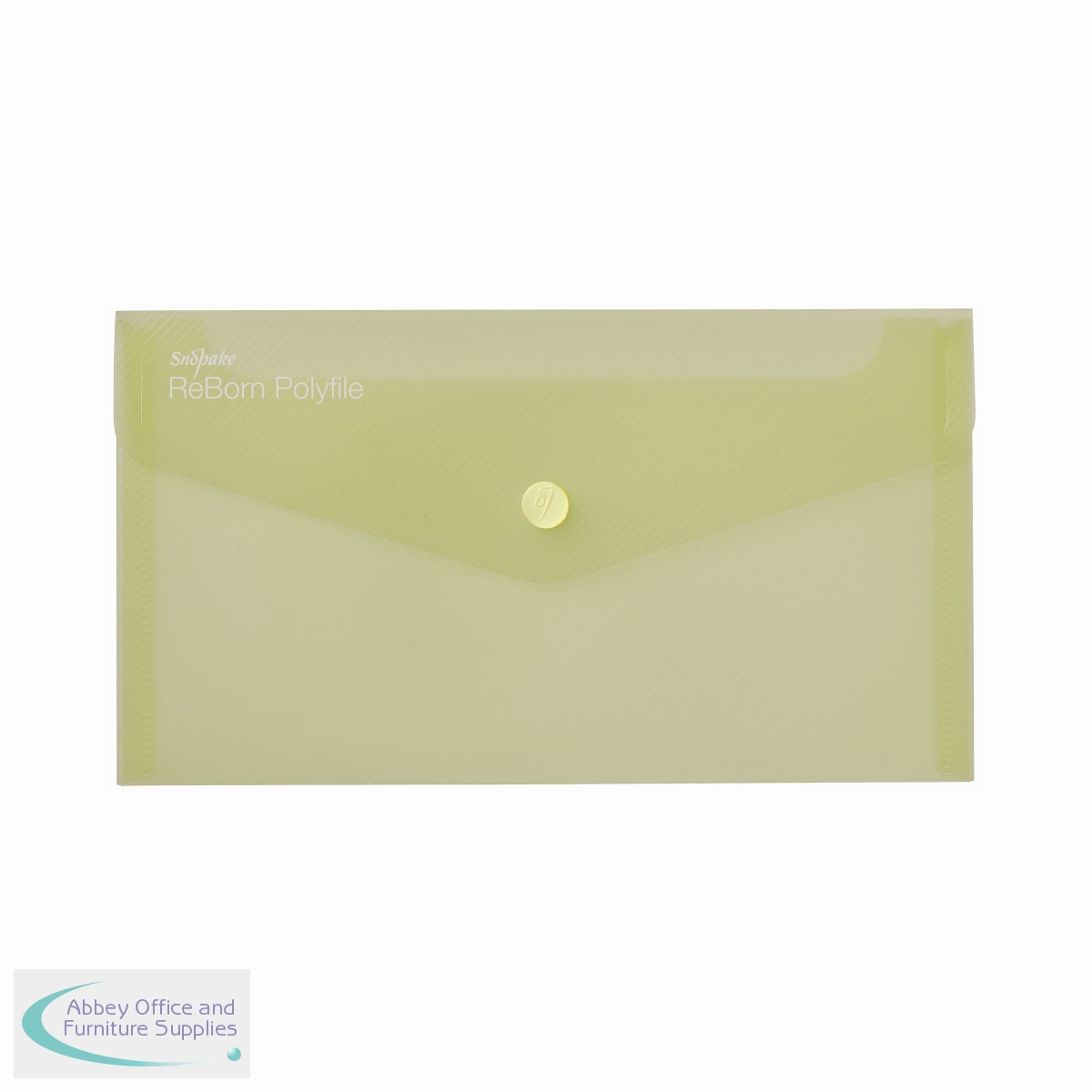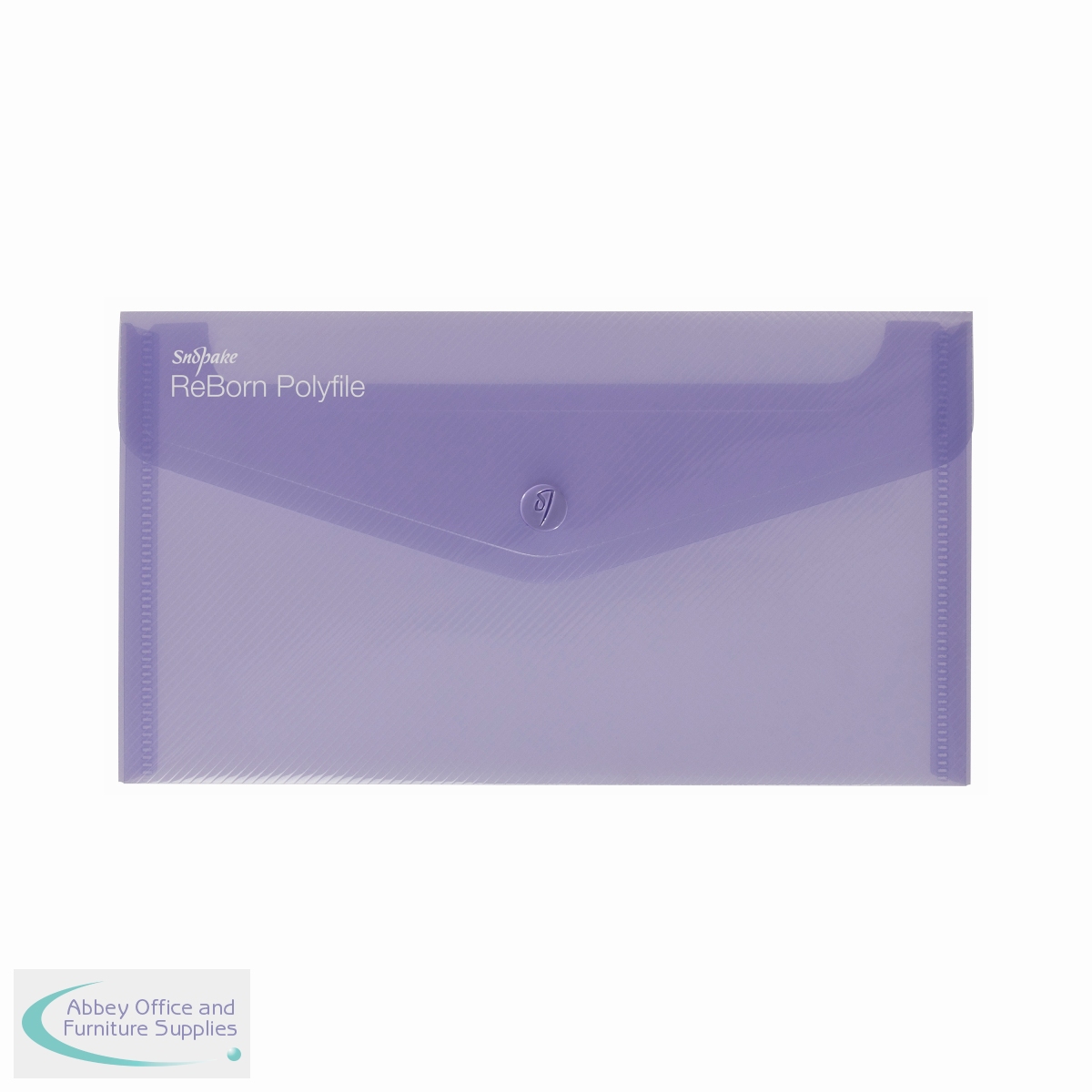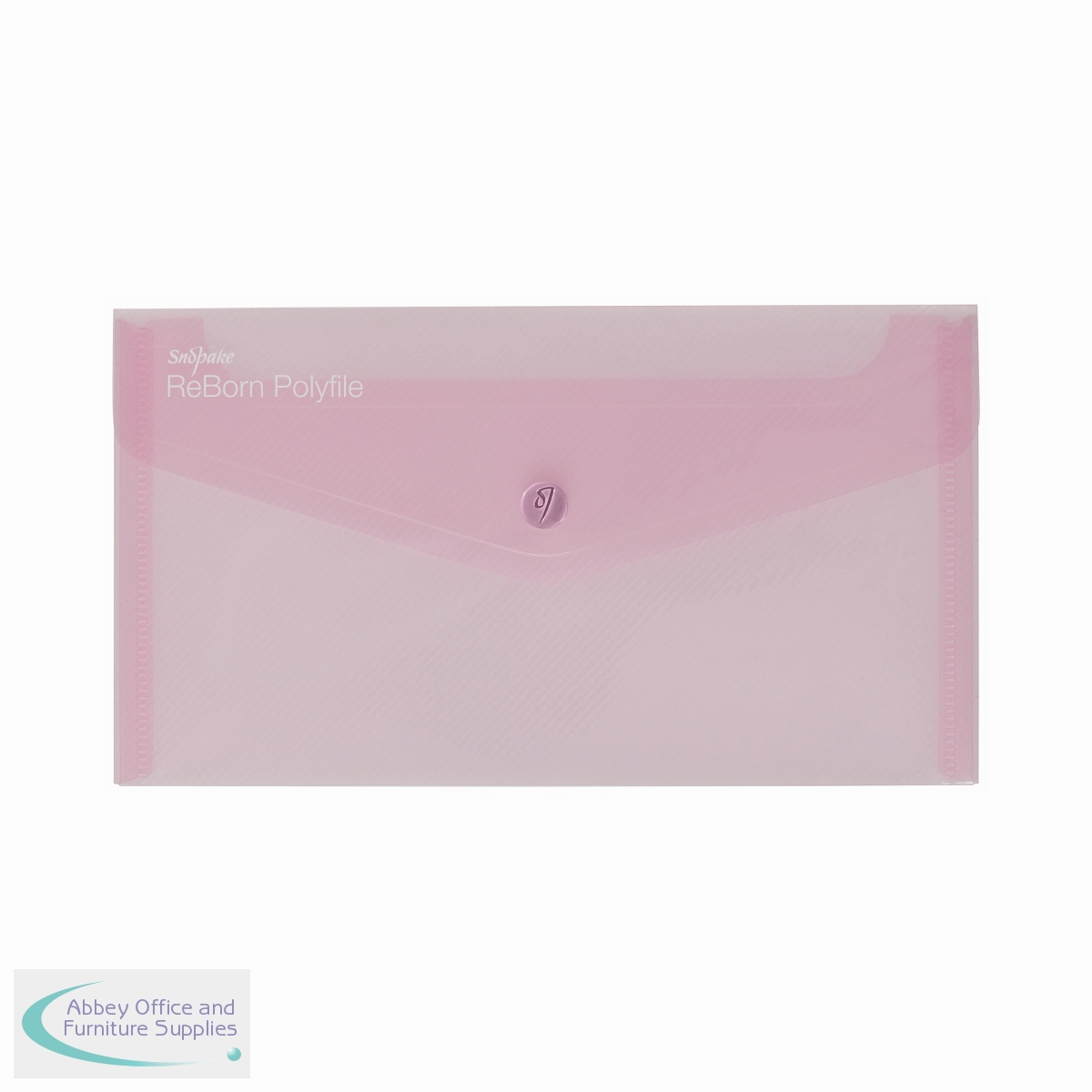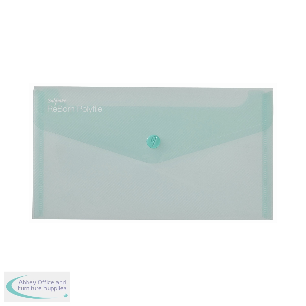 This Snopake Reborn Polyfile in DL size fits snugly into your pocket or bag, ideal for organising smaller objects, can hold up to 50 sheets. Ideal for punchless filing, you can store and organise your documents, photographs and artwork in perfect condition in this water-resistant wipe-clean folder. Snopake ReBorn is made from 100% recycled, heavy-gauge and tough polypropylene, the responsible and eco-friendly choice. with a 5 year guarantee. The attractive transparent superline finish in soft pastel hues, is ideal for quick and easy identification of contents, secured by a colour coordinated press-stud closure.