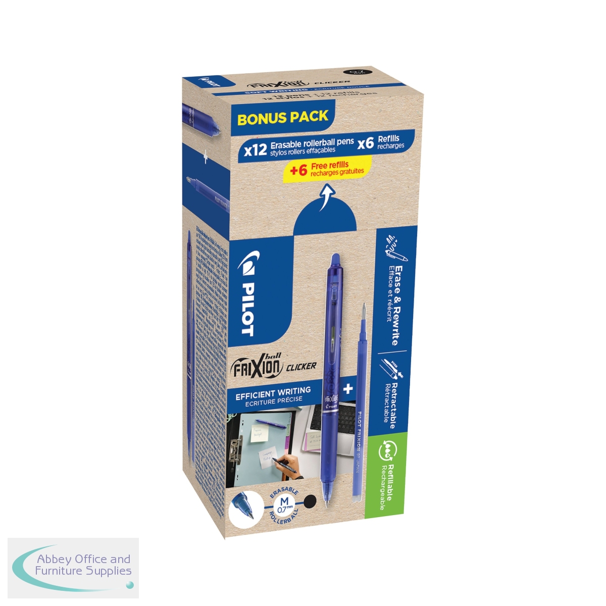 PI43584 - Pilot FriXion Ball Clicker Rollerball Bonus Pack Box 12 Pens +12 Refills Blue (Pack of 24) WLT435846