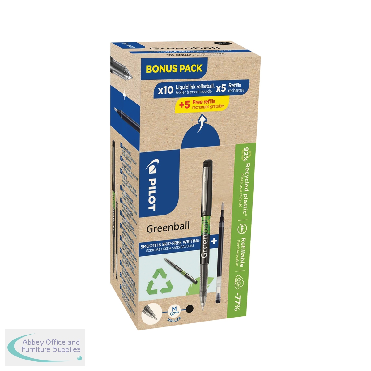 PI42474 - Pilot Greenball Rollerball Bonus Pack Black Box of 10 Pens + 10 Refills (Pack of 20) WLT424741