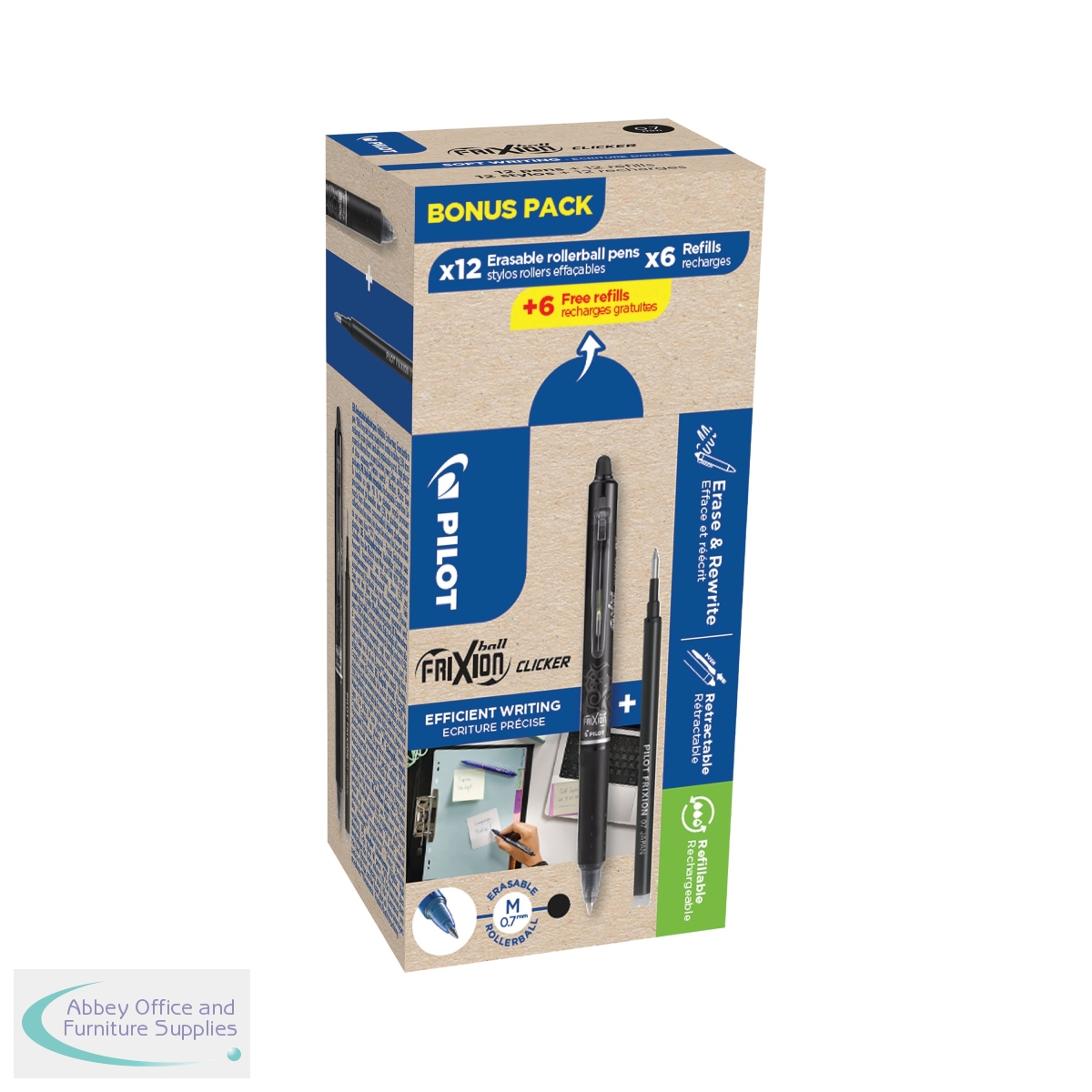 PI43585 - Pilot FriXion Ball Clicker Rollerball Bonus Pack Box 12 Pens +12 Refills Blk (Pack of 24) WLT435853