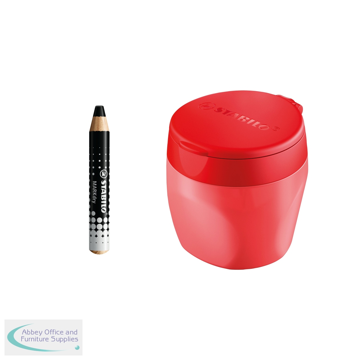 The Stabilo Markdry marker pencil is ideal for use on whiteboards, chalkboards, show me boards, glass and flipcharts. Easily erased with a damp or dry cloth on non-porous surfaces or washed off hands and clothes, these sustainable pencils with odourless and solvent-free lead last up to five times longer than a liquid whiteboard marker. This pack includes five Markdry pencils in black plus a free sharpener box in red.