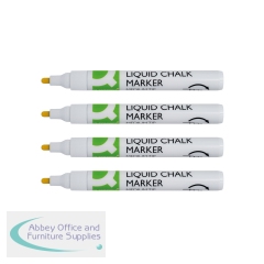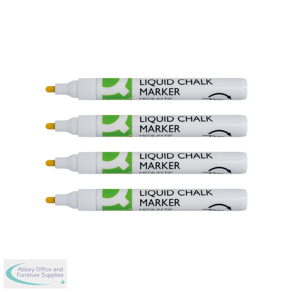 These white, Q-Connect, liquid chalk markers are ideal for writing on any primed chalkboard, glass or other non-porous surfaces such as tiles, whiteboards, plastic and metal. Featuring a double tip, the marker can be used as both a bullet and as chisel tip, offering a medium writing line width between 1.5 - 3.0mm. Supplied in a pack of 4.