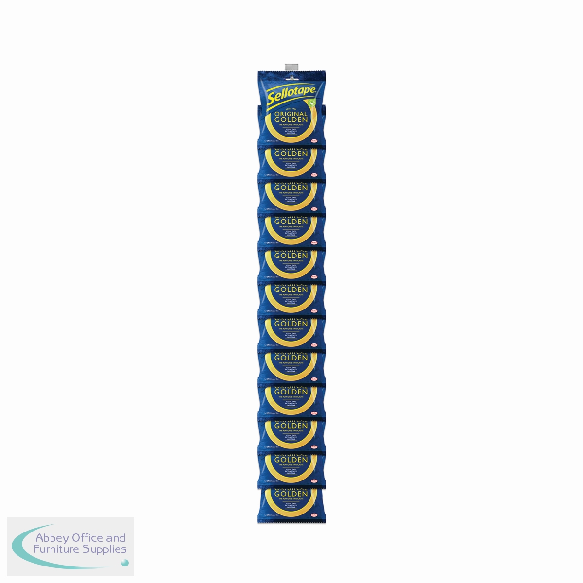Ideal for everyday use in the office and household, this Sellotape Original Golden Tape provides excellent adhesion and outstanding control. The bond solution for most sticking tasks, including wrapping presents, sticking paper, card, envelopes and all sorts of household objects quickly and efficiently. This pack contains 12 clip strip rolls of clear tape measuring 24mm x 50m.