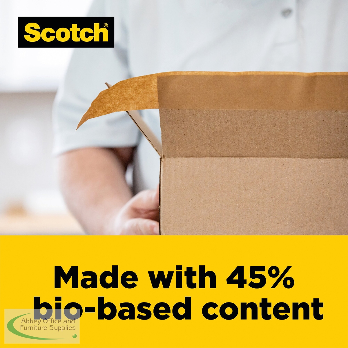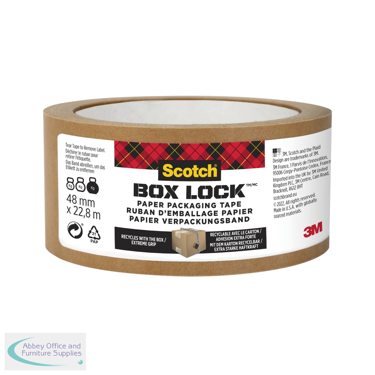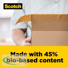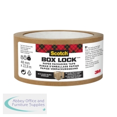 Supplied on an 22.8 metre roll, Scotch Box Lock Paper packaging tape is ideal for sealing boxes with extreme grip to ensure they stay sealed. Made with 45% bio-based content, the tape, its core and the packaging label are recyclable after use. Easy to use, this paper tape is simple to tear by hand and is moisture resistant.